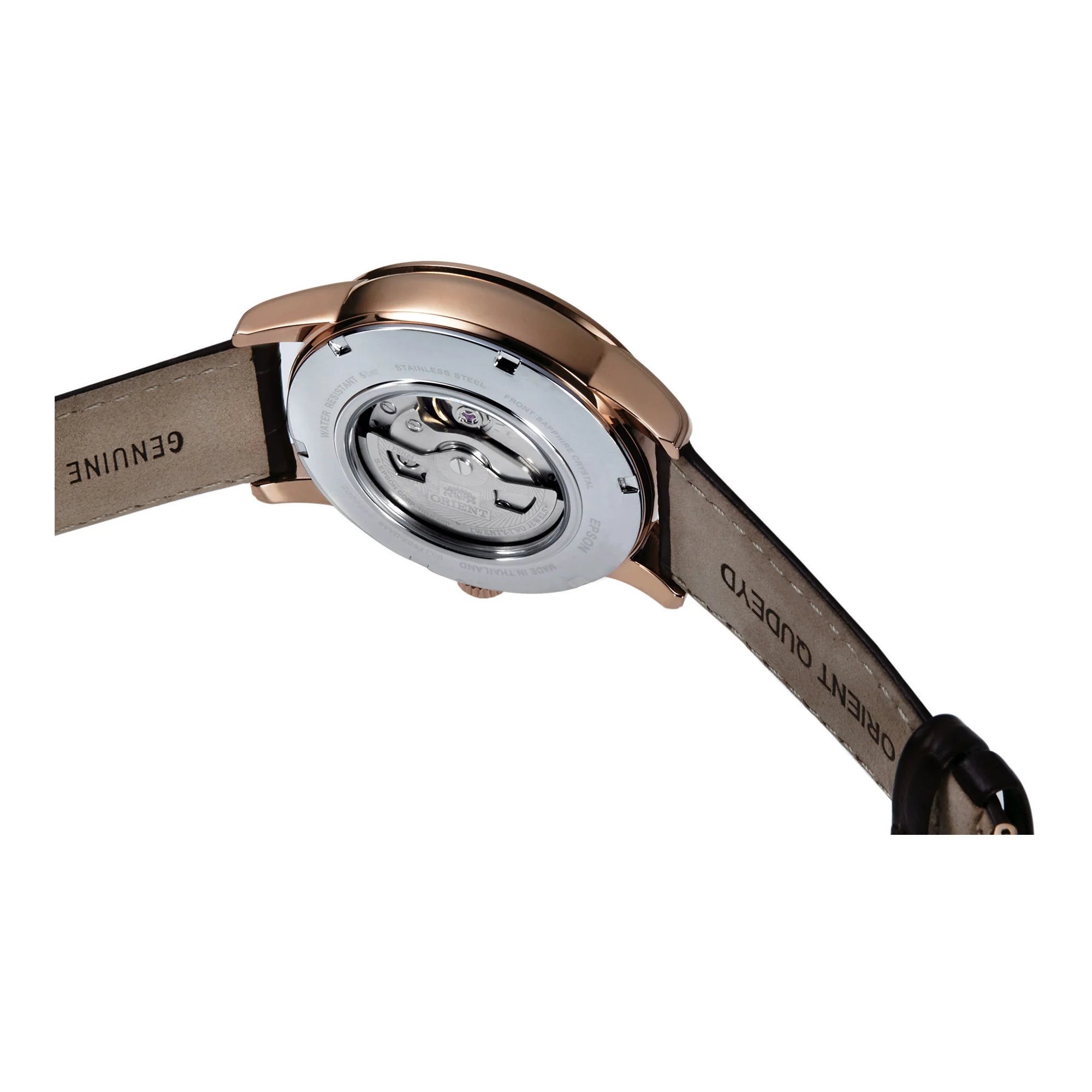 Ces montres pour hommes, expression de style, se distinguent par un design soigné et une fiabilité éprouvée. Faisant partie de la célèbre famille Sun & Moon, les modèles allient savoir-faire artisanal et fonctionnalité. Au cœur bat le mouvement mécanique de manufacture, calibre automatique ORIENT F6B24. Équipé de 22 rubis, il offre un remontage automatique, la possibilité de remontage manuel et une fonction stop-seconde pour un réglage précis de l’heure. La précision journalière annoncée se situe entre +25 et -15 secondes. Parmi les caractéristiques distinctives, la complication affichant jour et date ainsi que le cycle du soleil et de la lune, un élément rappelant le goût pour les garde-temps classiques. Les boîtiers, robustes et résistants, sont réalisés en acier inoxydable de forme ronde. Les dimensions, 42 mm de diamètre et 14 mm d’épaisseur, confèrent une présence affirmée mais équilibrée. À la protection des cadrans, des verres saphir garantissent une résistance aux rayures, tandis que les couronnes à pression et les fonds vissés à ouverture transparente offrent une vue sur le mouvement. Avec une étanchéité jusqu’à 50 mètres, les modèles conviennent à un usage quotidien. La sécurité au poignet est assurée par des fermoirs déployants à bouton-poussoir, conçus pour la praticité et le confort. Montres classiques et polyvalentes, elles représentent une montre habillée adaptée à ceux qui recherchent un accessoire alliant tradition, esthétique sobre et bonne qualité. Les garde-temps sont livrés dans un coffret ORIENT, accompagnés d’un manuel d’instructions et d’une garantie internationale ORIENT de 2 ans, preuve de l’engagement envers la fiabilité et le service. Montres automatiques accompagnées d’accessoires masculins célébrant histoire et innovation.