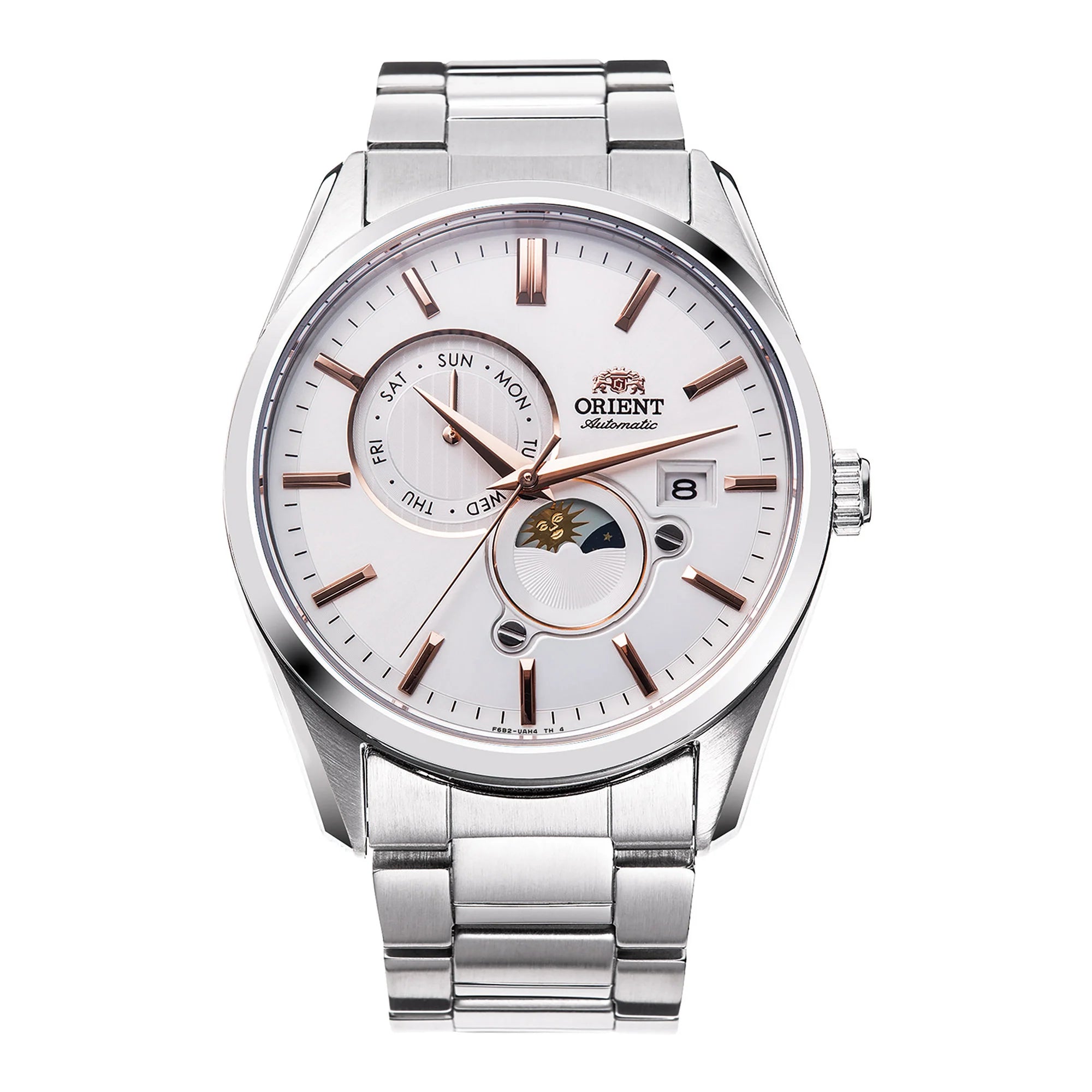 Explorez la collection Contemporary, où élégance quotidienne et ingénierie de précision se rencontrent. Ces montres-bracelets allient qualité fiable et design soigné, s’adressant à ceux qui apprécient un style masculin sobre et polyvalent. Les modèles Sun & Moon se distinguent par l’indication jour/nuit fascinante, une complication qui ajoute du caractère au cadran et accompagne le jour et la date dans une disposition ordonnée. Au cœur des garde-temps fonctionne le calibre automatique F6B24 avec 22 rubis, remontage automatique et manuel ainsi que fonction stop-seconde pour un réglage précis de l’heure ; la précision annoncée est de +25/−15 secondes par jour. Les boîtiers ronds en acier inoxydable mesurent 42 mm de diamètre et 13 mm d’épaisseur, des proportions qui garantissent une présence au poignet sans sacrifier le confort. Le verre saphir protège le cadran et favorise la lisibilité dans le temps. La couronne à pression rend l’utilisation intuitive, tandis que le fond vissé avec hublot transparent permet d’observer le mouvement en action. Avec une étanchéité de 50 m, les modèles conviennent à un usage quotidien, résistant aux éclaboussures et contacts occasionnels avec l’eau. La fermeture est une boucle déployante avec bouton-poussoir, un choix qui allie praticité et maintien au poignet. L’ensemble restitue un style décontracté-élégant facilement assortissable, pour passer du travail aux loisirs avec cohérence esthétique. Les garde-temps sont livrés dans la boîte ORIENT, accompagnés d’une garantie internationale ORIENT de 2 ans et d’un mode d’emploi. Une proposition qui allie fonctions utiles et design reconnaissable : les références Sun & Moon offrent un automatique fiable, soigné dans les détails et conçu pour durer au quotidien.