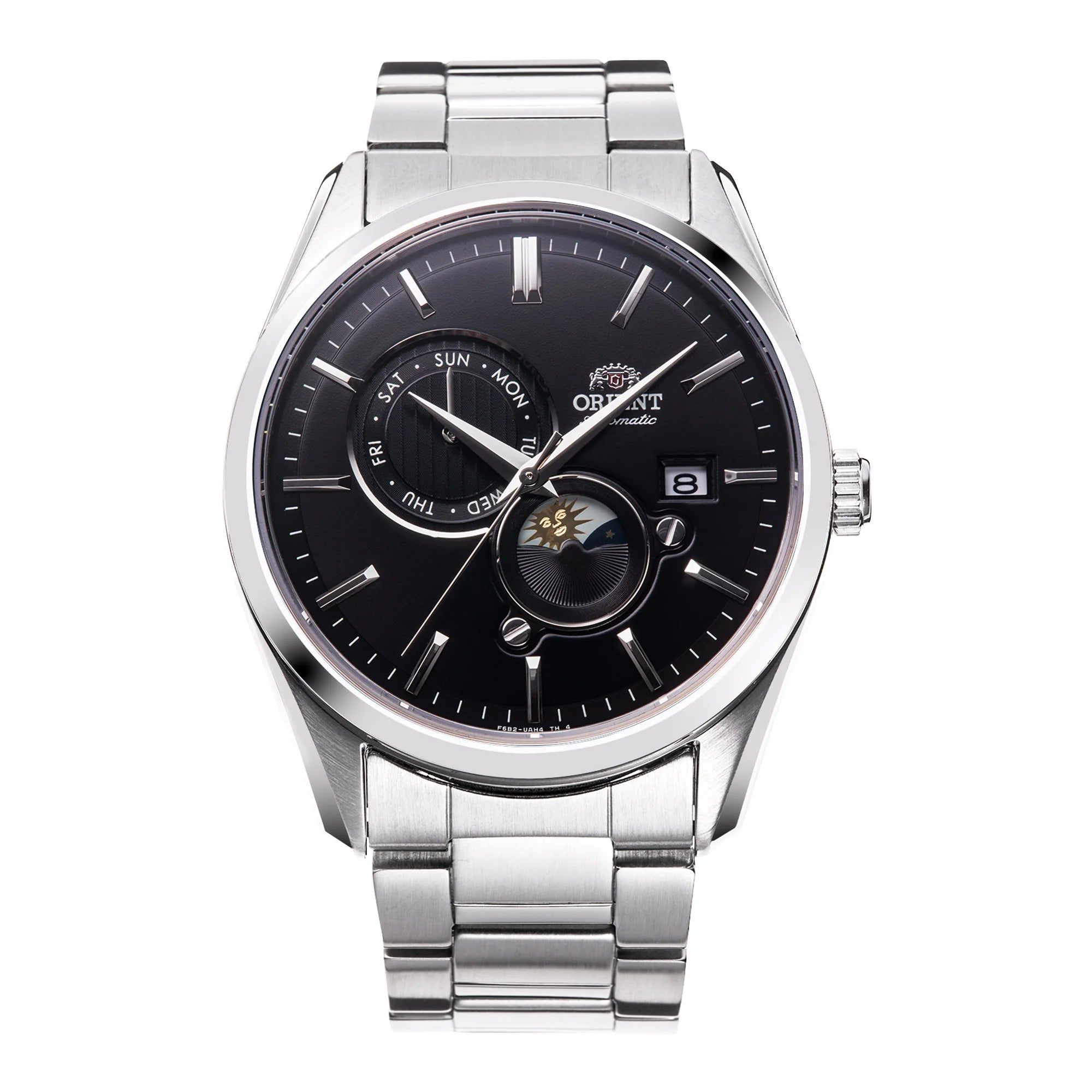 Complication jour/nuit au cœur du projet, avec un disque illustré qui accompagne le déroulement des heures. Le cadran adopte une disposition à plusieurs compteurs pour la date et le jour, conservant ordre et lisibilité. Index appliqués ou chiffres romains, minuterie précise et aiguilles effilées définissent un langage classique. Finitions radiales ou dégradées ajoutent de la profondeur, tandis que les bracelets en cuir et le bracelet en acier élargissent les possibilités d’association.