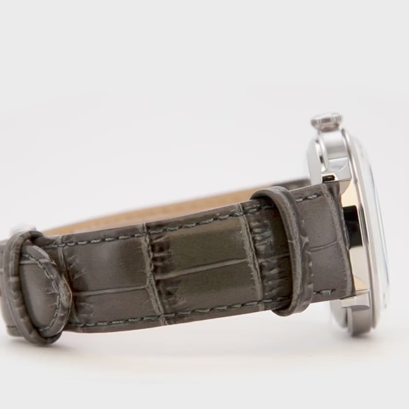 Cadran classique avec compteurs dédiés au jour, à la date et à l’indication des heures sur vingt-quatre, qui en définissent l’identité. Verre bombé et cadran légèrement incurvé évoquent les montres habillées, tandis que les index appliqués et les aiguilles effilées assurent une lecture claire. Les palettes alternent blanc et ivoire avec des aiguilles bleues, à des variantes grises et bordeaux aux contrastes chaleureux. Le fond transparent met en valeur le mouvement mécanique, entre tradition et fonctionnalité quotidienne.