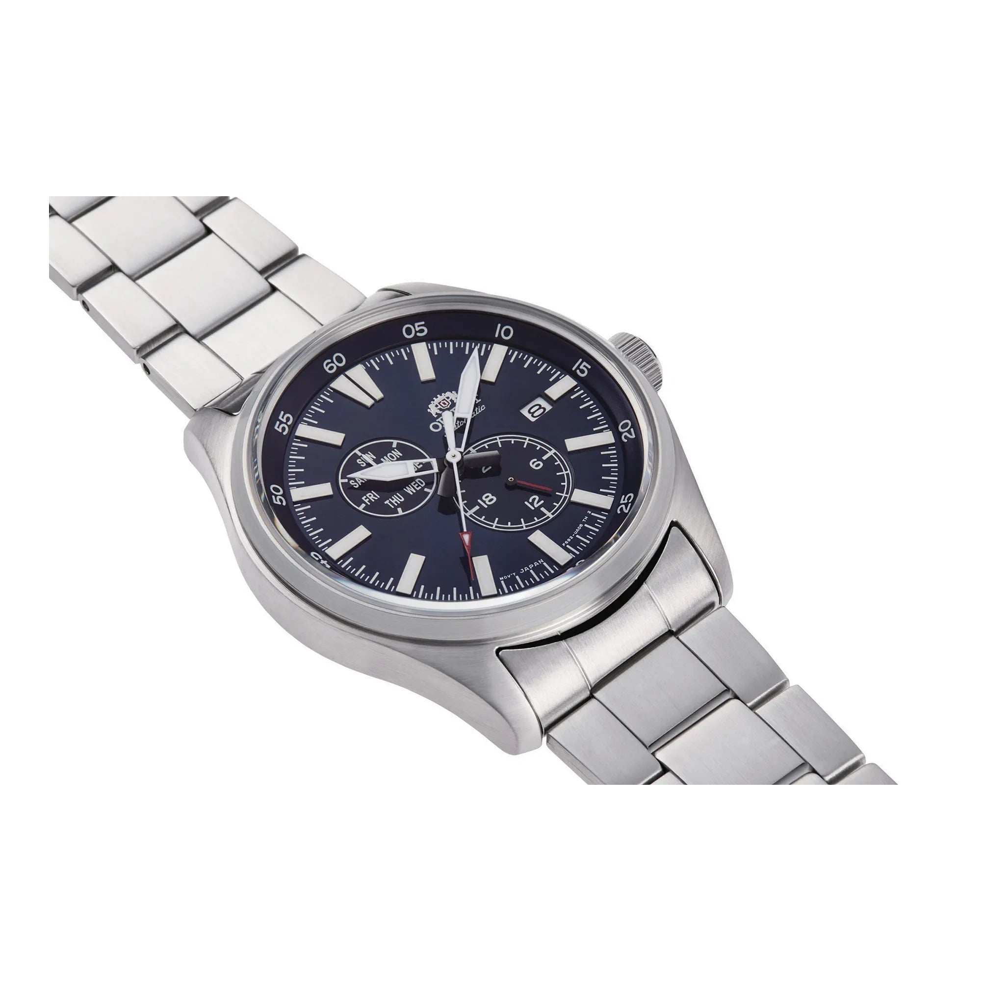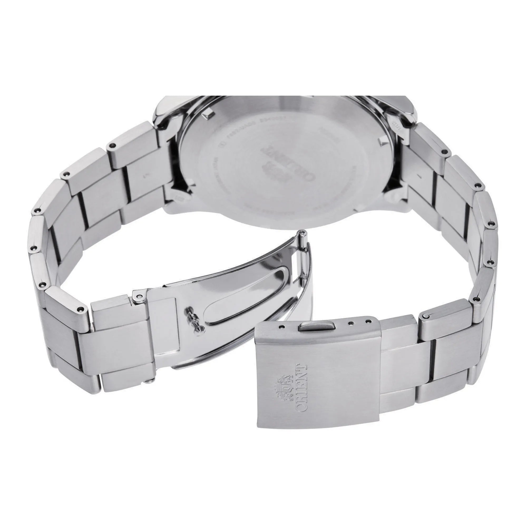 Découvrez la collection ORIENT Sports, synonyme de fiabilité et d’élégance pour l’homme contemporain. Chaque montre ORIENT allie tradition et innovation, offrant des instruments de mesure du temps robustes et soignés dans les moindres détails. Ce modèle, inspiré de la série Field, est conçu pour ceux qui souhaitent un compagnon précis et résistant, adapté aussi bien aux activités quotidiennes qu’aux moments de détente. Il est équipé en son cœur du mouvement mécanique automatique ORIENT Calibre F6B22. Doté de 22 rubis, il offre une précision estimée à +25/-15 secondes par jour. Il dispose d’un remontage automatique, d’une possibilité de remontage manuel et d’une fonction stop-seconde pour un réglage précis de l’heure. Le cadran présente trois aiguilles ainsi qu’une indication du jour et de la date, des fonctions pratiques pour un usage quotidien. Le boîtier en acier inoxydable, d’un diamètre de 43 mm et d’une épaisseur de 12 mm, confère au modèle une présence solide et équilibrée au poignet. La résistance à l’eau est assurée jusqu’à 100 mètres (WR 100m), grâce à la couronne et au fond vissés qui protègent le mouvement interne des infiltrations. Le verre minéral, résistant aux chocs, préserve le cadran, tandis que les index et aiguilles traités avec un matériau luminescent garantissent une bonne lisibilité même en conditions de faible éclairage. Le bracelet est équipé d’une boucle déployante à bouton-poussoir, pour un ajustement sûr et confortable. Cette montre pour homme allie la robustesse typique d’un modèle Sports à une esthétique sobre et polyvalente, adaptée à toute occasion. Un instrument de mesure du temps automatique fiable et bien conçu, idéal pour ceux qui recherchent fonctionnalité, qualité de fabrication et un style essentiel mais distinctif.