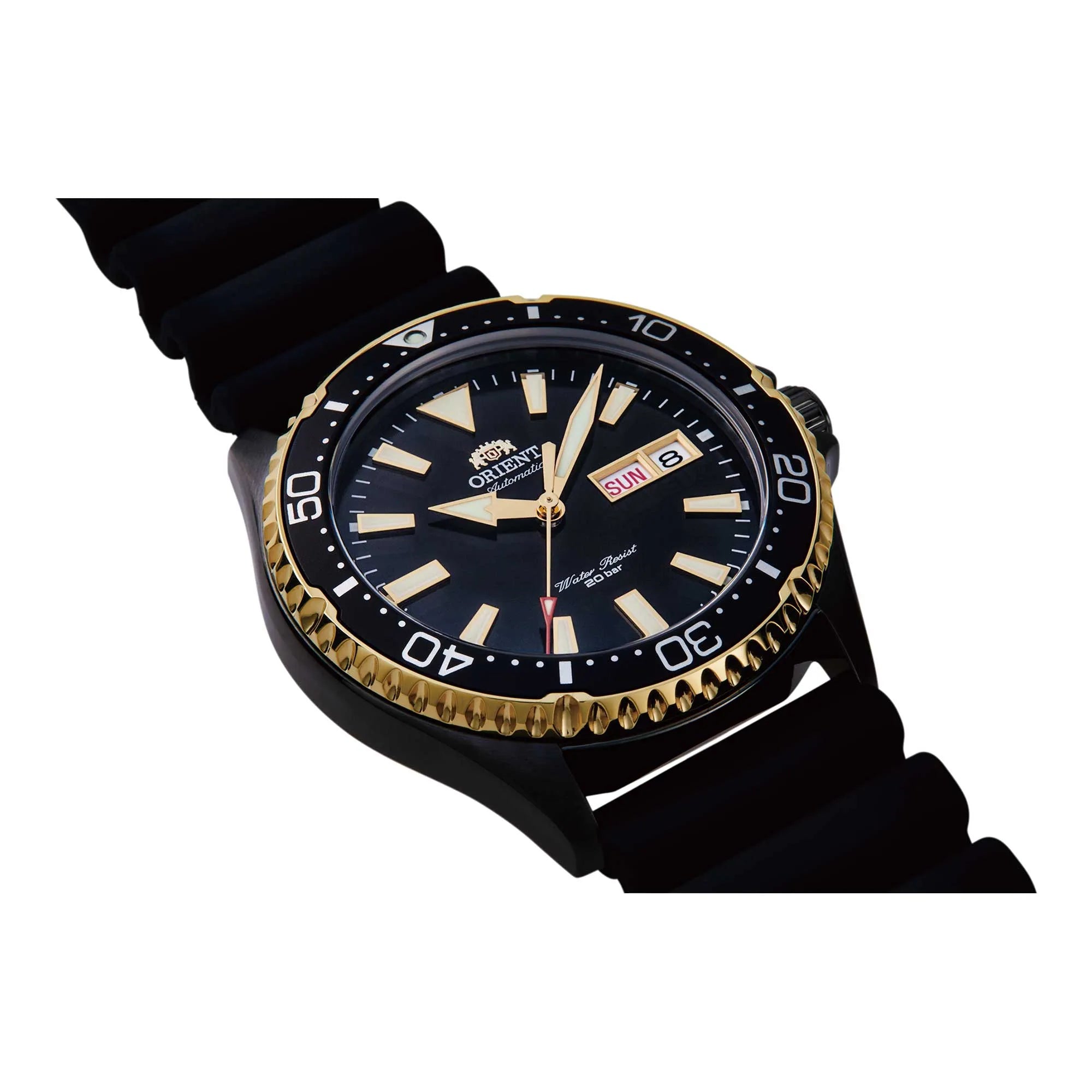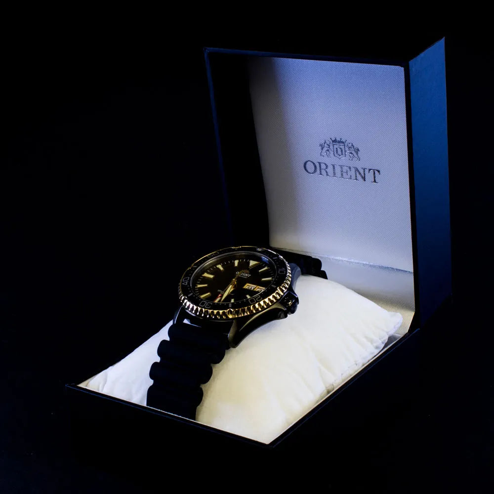 Cadran noir et détails dorés sur boîtier sombre : contraste chaleureux et graphisme épuré. Lunette graduée 60 minutes encadre le temps, bracelet en caoutchouc pour un confort décontracté et jour/date à 3 heures pour plus de commodité. Luminescence uniforme dans l’obscurité. Une touche urbaine avec des finitions dorées mesurées : caractère sans ostentation, idéal pour une touche essentielle mais avec une note chaude et reconnaissable. Le boîtier s’harmonise naturellement avec le caoutchouc.