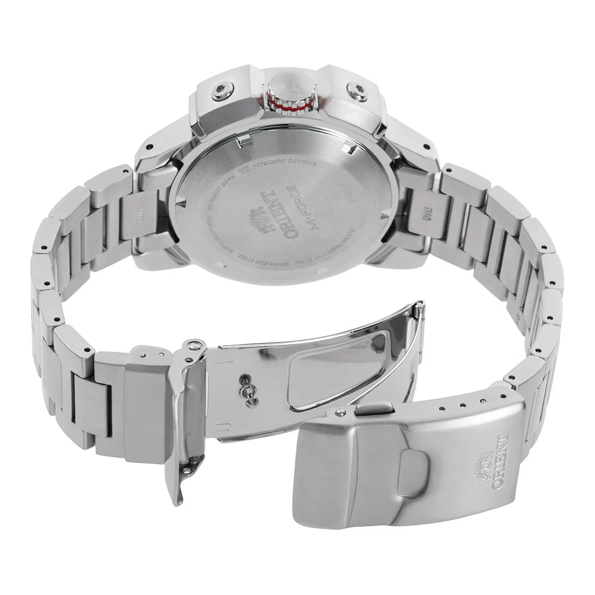 Découvrez la robustesse et la qualité de la collection Sports d’ORIENT. Le modèle M-Force incarne l’équilibre entre performances techniques et design fonctionnel. Conçu pour affronter des conditions exigeantes, c’est une montre de plongée professionnelle qui se distingue également par un style affirmé, adapté à l’homme contemporain. Fruit de la tradition horlogère, ce garde-temps automatique se fait apprécier pour sa fiabilité et sa solidité de construction. Le boîtier rond, de grande taille avec un diamètre de 45 mm et une épaisseur de 13 mm, est réalisé en acier inoxydable. Il est équipé d’une lunette tournante unidirectionnelle avec fonction « count-up », utile pour la mesure des temps de plongée. La montre offre une étanchéité jusqu’à 200 mètres, certifiée Diver’s, garantie par la couronne et le fond vissés qui assurent une protection efficace contre l’eau et la poussière. Le verre saphir protège le cadran avec une grande résistance aux rayures, tout en maintenant une bonne lisibilité en toutes circonstances. Le mouvement automatique ORIENT Calibre F6727 est un mécanisme à trois aiguilles avec dateur, doté de 22 rubis. Il garantit une précision estimée à +25/-15 secondes par jour et est alimenté par remontage automatique et manuel. Il comprend la fonction stop-seconde (hacking), qui permet un réglage précis de l’heure. Un calibre solide et fiable, conçu pour un usage quotidien ou sportif. Les aiguilles et index traités avec un matériau luminescent assurent une lisibilité même en environnements peu éclairés, un détail important pour une utilisation sous-marine ou en plein air. Le bracelet est complété par une boucle déployante avec bouton de sécurité, pour un maintien stable et confortable même lors d’activités physiques. Idéal pour ceux qui recherchent une montre homme robuste, fonctionnelle et au design technique. Le modèle M-Force est l’expression de la résistance et de la précision, pensé pour accompagner l’utilisateur dans tous les contextes, du quotidien aux défis les plus dynamiques. Une montre automatique fiable et distinctive, parfaite pour ceux qui désirent un instrument professionnel avec du caractère.