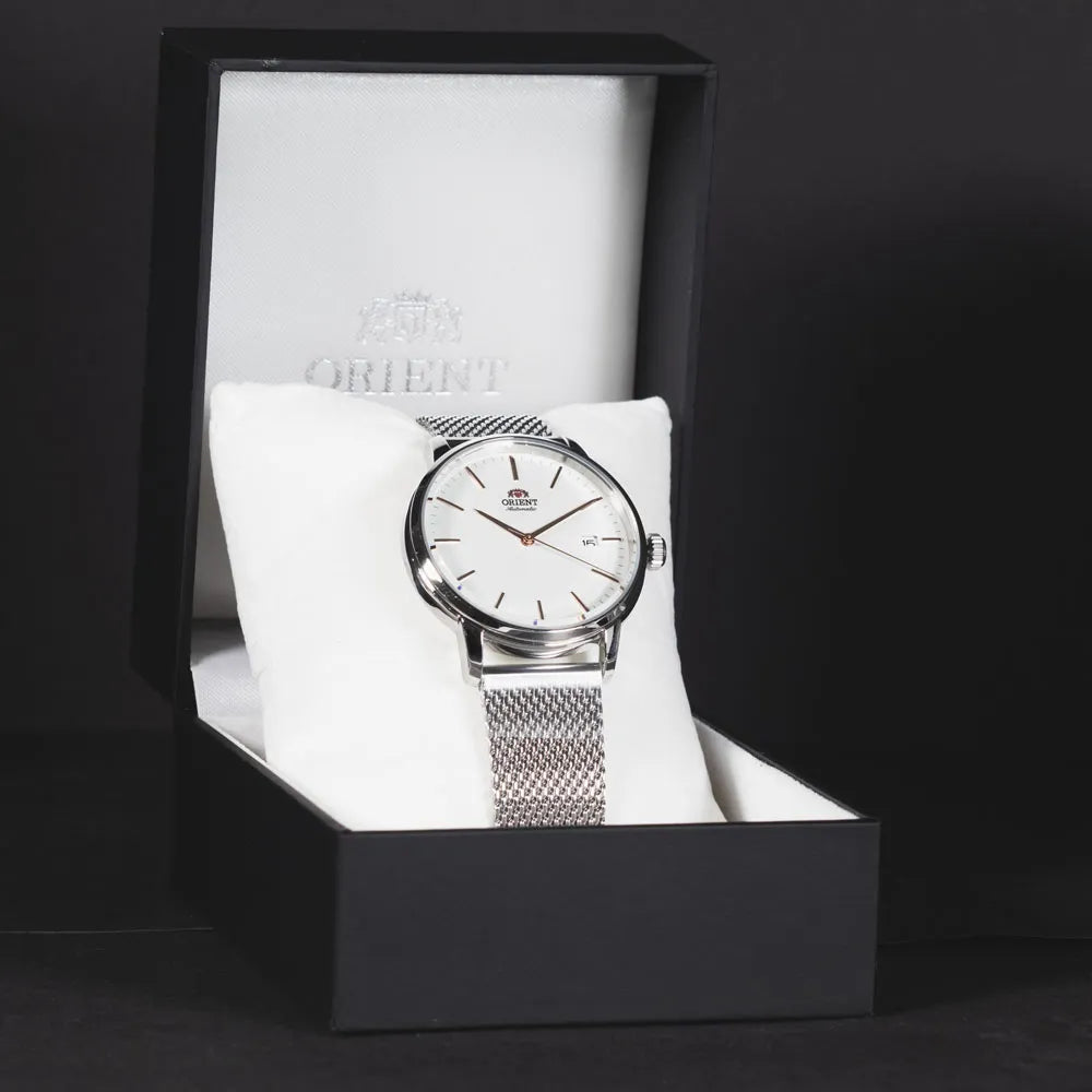 Découvrez la collection Contemporary d’ORIENT, une gamme qui allie élégance et fiabilité mécanique. Le modèle Stylish Maestro est conçu pour l’homme qui apprécie la précision et un design intemporel, adapté à toutes les occasions, du quotidien aux situations les plus formelles. Une montre qui conjugue style et fonctionnalité, reflétant le soin apporté à la fabrication et l’identité de la marque ORIENT. Le mouvement automatique ORIENT Calibre F6722, équipé de 22 rubis, offre une précision estimée à +25/-15 secondes par jour. Il supporte à la fois le remontage automatique et manuel et inclut la fonction stop-seconde (hacking), permettant un réglage précis de l’heure. Le fond transparent vissé permet d’admirer le mouvement en action, mettant en valeur le charme de la mécanique interne et l’attention aux détails qui caractérisent ce modèle. Le boîtier rond en acier inoxydable, d’un diamètre de 40 mm et d’une épaisseur de 12 mm, garantit des proportions équilibrées et une présence raffinée au poignet. La résistance à l’eau jusqu’à 100 mètres (WR 100mt) le rend adapté à un usage quotidien, même dans des situations dynamiques ou lors d’activités légères en milieu aquatique. Le verre minéral protège le cadran, offrant une bonne résistance aux rayures, tandis que la couronne à pression permet une utilisation pratique et immédiate. Le bracelet, d’une largeur de 20 mm et d’une longueur de 19 cm, s’adapte ergonomiquement au poignet, offrant un confort tout au long de la journée. La boucle déployante pliable avec bouton assure stabilité, praticité et sécurité, rendant le modèle adapté à un usage continu. Le modèle Stylish Maestro représente une parfaite synthèse entre sobriété et personnalité, idéal pour ceux qui désirent une montre automatique fiable et polyvalente, capable de s’intégrer à différents styles. C’est un choix de caractère pour l’homme qui recherche un équilibre entre design contemporain et mécanique traditionnelle. La montre est livrée dans son emballage d’origine ORIENT, accompagnée du manuel d’utilisation et d’une garantie internationale de 2 ans, témoignant de l’engagement de la marque envers la qualité, la durabilité et la satisfaction du client.