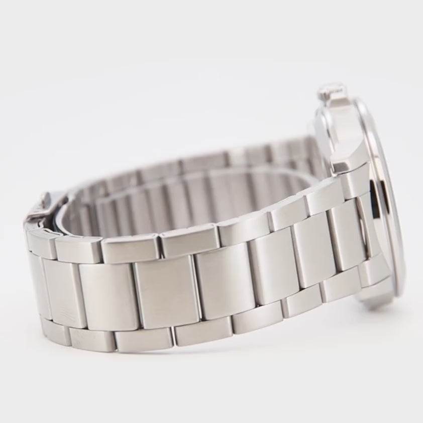 Quadrante nero con grafica ordinata, indici applicati e lancette coordinate sotto vetro minerale, la finestra data si integra con discrezione lungo l’asse del layout, mentre la minuteria perimetrale guida lo sguardo con regolarità. La cassa in acciaio adotta fondello trasparente che accenna alla meccanica senza rubare la scena, il bracciale a finitura mista completa l’insieme con continuità materica. Un profilo pulito e versatile, curato nei dettagli e facile da abbinare.