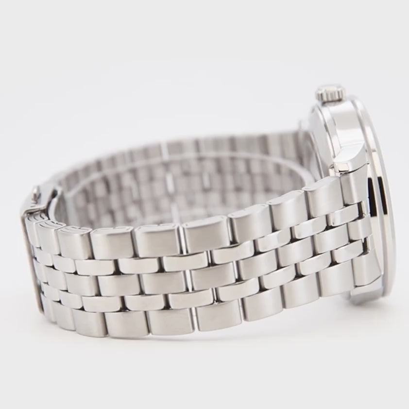 Estetica da abito dal disegno ordinato: quadrante pulito con indici applicati o numeri romani, sfere affusolate e datario integrato per una lettura chiara. Finiture lucide e satinate definiscono un profilo sobrio, disponibile su bracciale in acciaio o cinturini in pelle. Le palette spaziano dal nero e blu alle tonalità silver e champagne. Una linea pensata per un’eleganza quotidiana, con carattere classico aggiornato nei dettagli. Proporzioni equilibrate agevolano la comodità sotto il polsino.