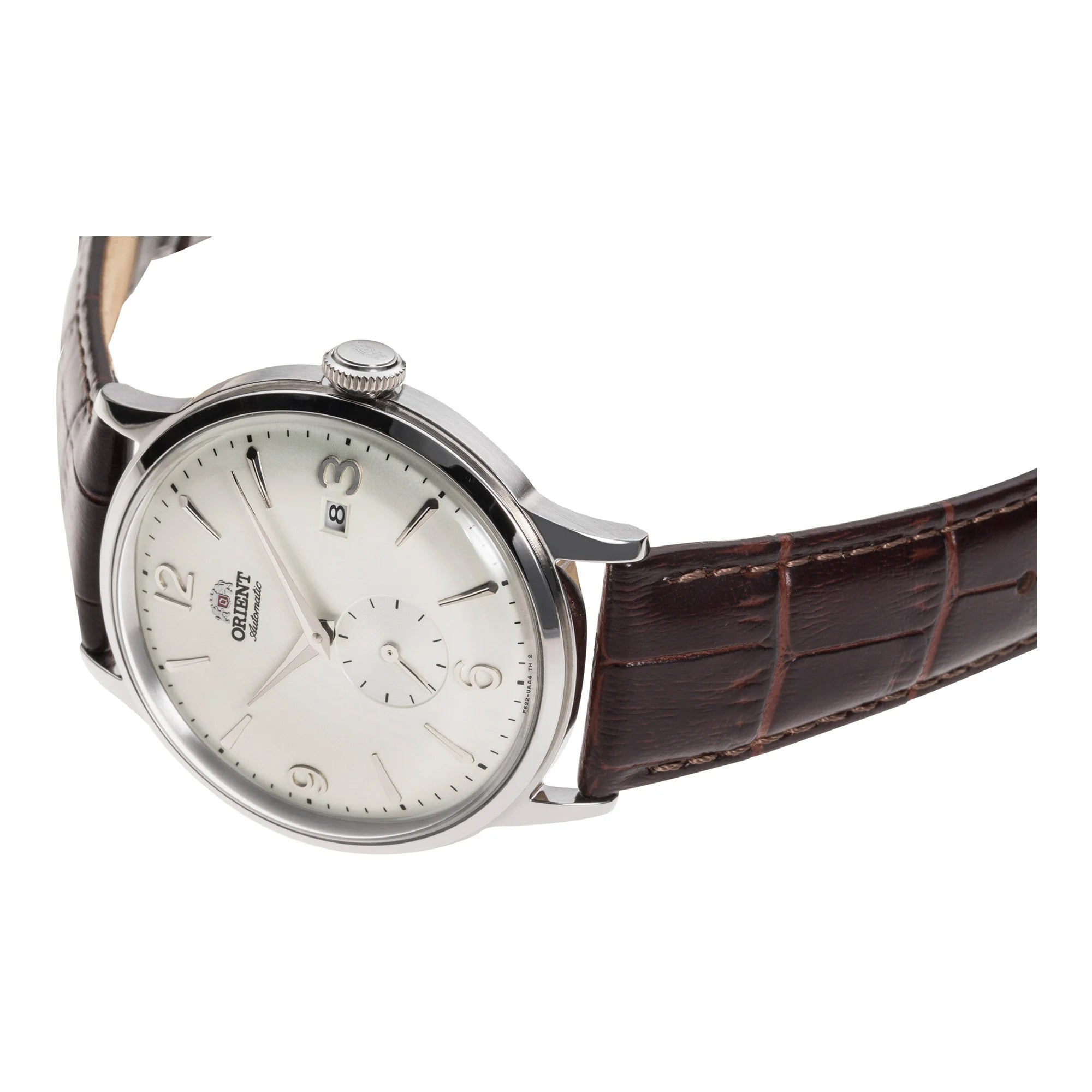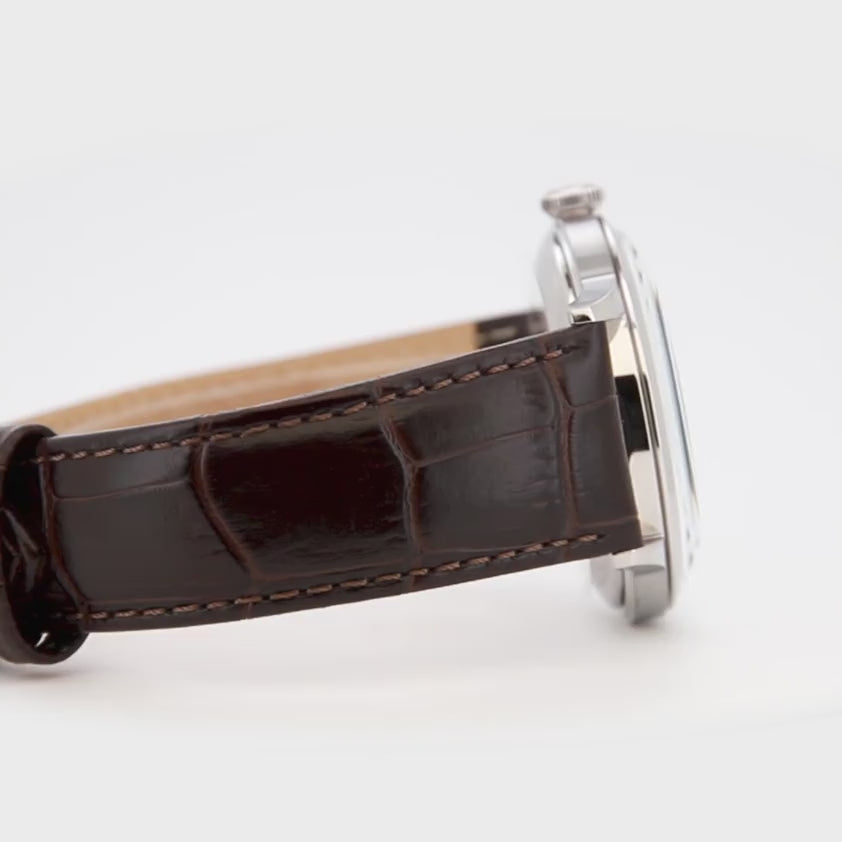 Piccoli secondi come firma estetica, con un contatore dedicato che alleggerisce il quadrante e introduce un ritmo continuo. L’impianto resta classico: vetro bombato, quadrante leggermente curvo e grafica ordinata con cifre arabe alternate a indici a barre. Una finestra data si integra con discrezione, mentre le finiture radiali e le varianti placcate si alternano a toni neutri e scuri. Cinturini in pelle a stampa cocco completano un carattere formale aggiornato nei dettagli.
