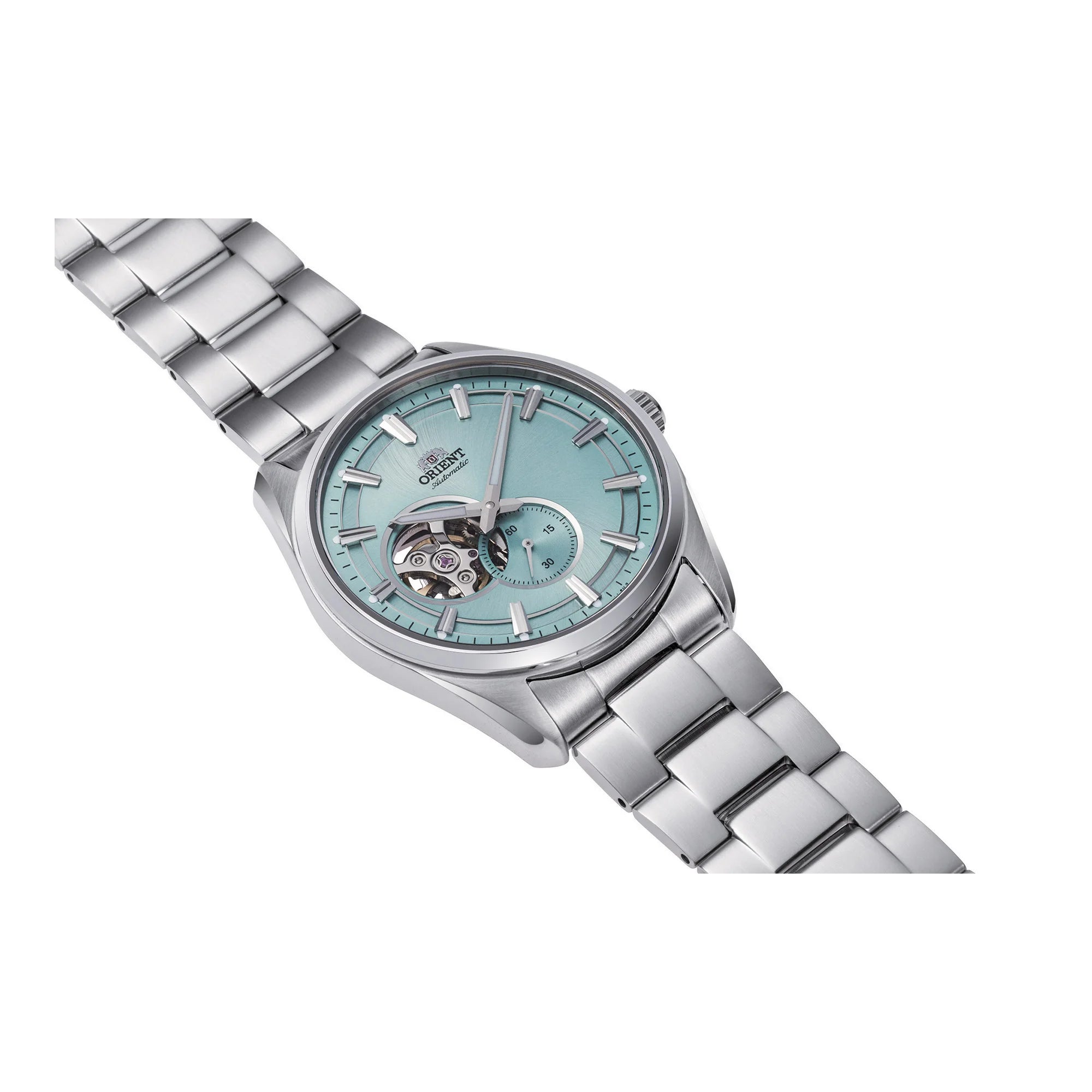 Quadrante con anima a vista e piccoli secondi in dialogo: la finestra semi-skeleton si sovrappone al contatore creando profondità e ritmo. Cassa dal segno deciso e grafica ordinata privilegiano la leggibilità, mentre finiture radiali e palette dal bianco all’azzurro, al verde e al rosso aggiornano l’estetica. Il fondello trasparente svela il movimento di manifattura. Il bracciale in acciaio completa un equilibrio tra carattere tecnico ed eleganza quotidiana.