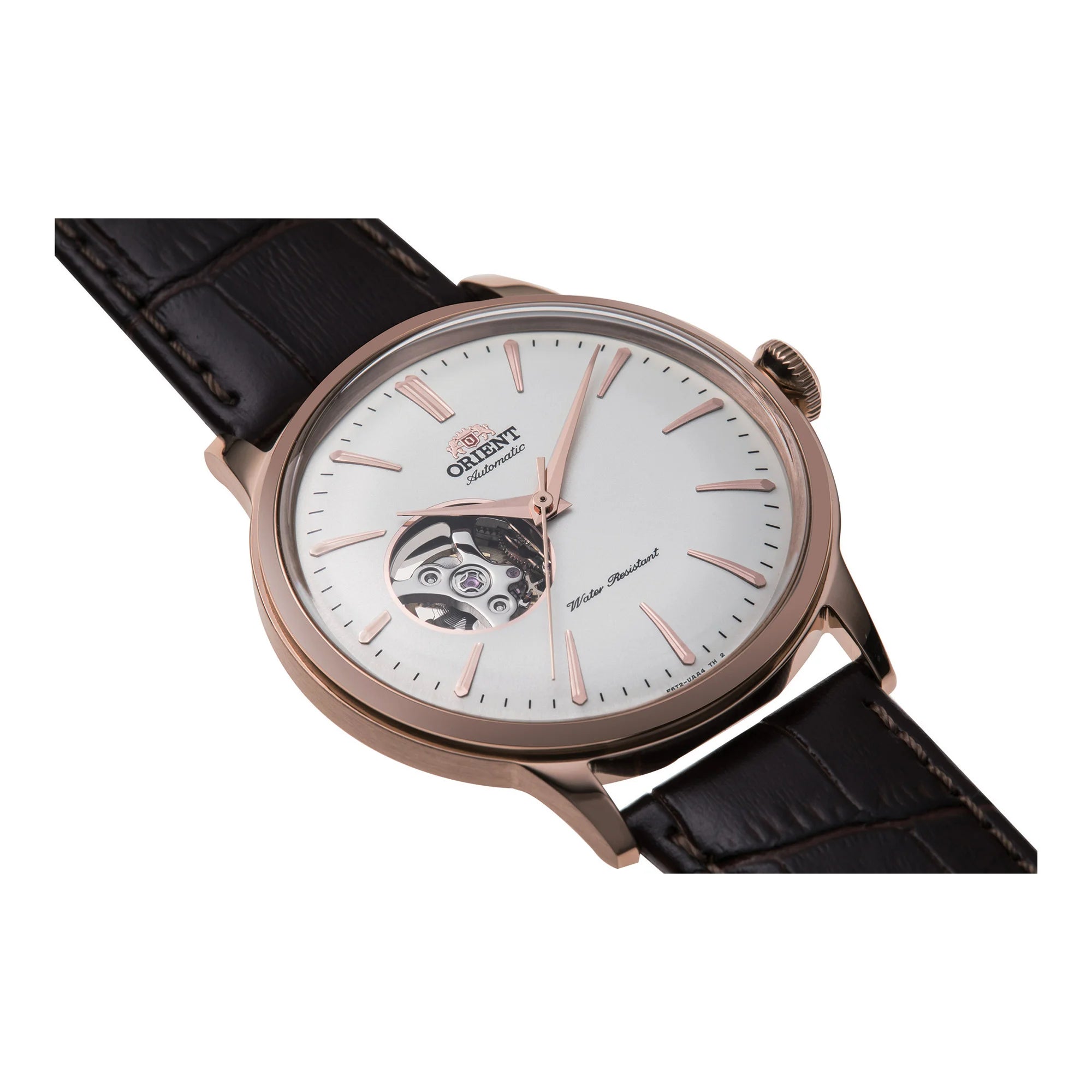 Protagonista è l’open heart: la finestra sul quadrante svela il bilanciere e aggiunge ritmo visivo a ogni secondo. L’impianto resta quello del classico orologio da abito, con vetro bombato, quadrante leggermente curvo e indici ordinati per una lettura pulita. Finiture radiali e contrasto lucido/satinato enfatizzano la profondità della scena, mentre i cinturini in pelle completano un insieme elegante con una nota meccanica dichiarata.