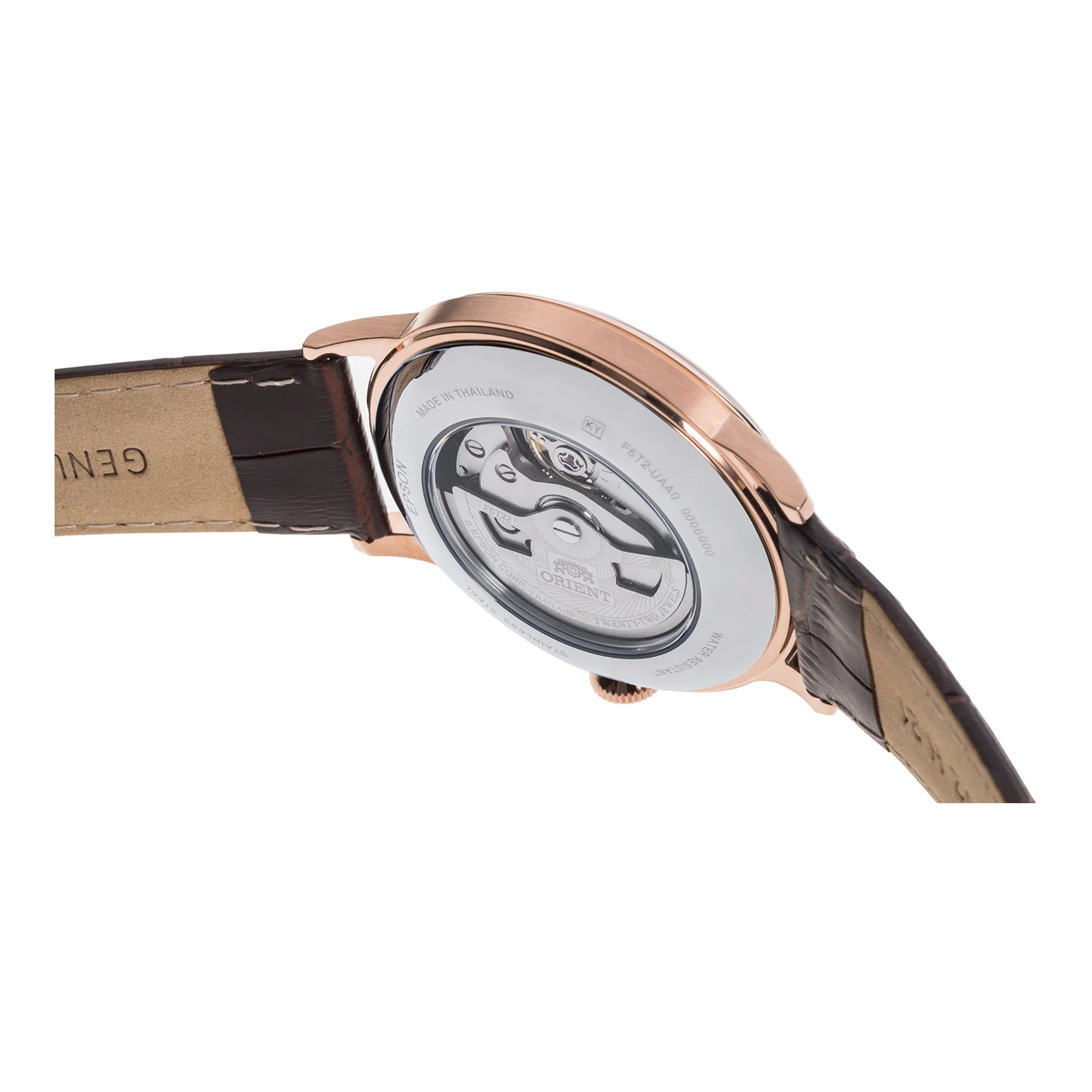 Esplora la collezione Classic, una celebrazione di design essenziale e precisione meccanica. Questo dress watch automatico unisce linee pulite e affidabilità quotidiana, pensato per chi apprezza uno stile sobrio ma distintivo, adatto dal lavoro agli eventi serali. Al cuore batte il calibro F6T22, movimento meccanico a carica automatica e manuale con 22 rubini e funzione di hacking per una regolazione precisa dell’ora. Il caratteristico open heart a ore 9 apre uno scorcio sul bilanciere, valorizzando l’anima meccanica senza rinunciare alla leggibilità. La cassa rotonda in acciaio inossidabile misura 40 mm di diametro e 12 mm di spessore, proporzioni equilibrate per una presenza confortevole al polso. Il fondello a pressione trasparente permette di osservare il movimento in azione; il vetro minerale protegge il quadrante, mentre la corona a pressione rende intuitive le regolazioni. L’impermeabilità supporta l’uso quotidiano. Il cinturino (ansa 21 mm, lunghezza 20 cm) con fibbia ad ardiglione assicura una calzata sicura e regolabile. Marchio giapponese noto per la coerenza tra qualità e valore, ORIENT propone qui un equilibrio tra tradizione costruttiva ed estetica classica, con attenzione ai dettagli e alla durata nel tempo. L’orologio viene consegnato nella confezione originale ORIENT, con garanzia internazionale di 2 anni e manuale d’uso. Per chi cerca un automatico affidabile dal carattere elegante, Bambino Open Heart è una scelta concreta: stile misurato, meccanica visibile e indosso versatile.