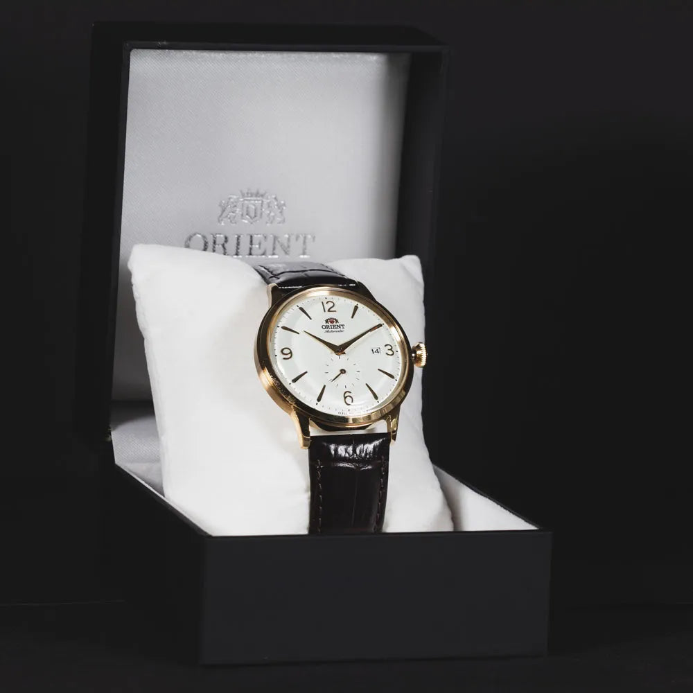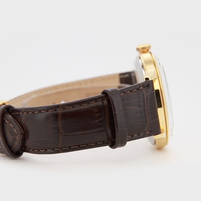 Piccoli secondi come firma estetica, con un contatore dedicato che alleggerisce il quadrante e introduce un ritmo continuo. L’impianto resta classico: vetro bombato, quadrante leggermente curvo e grafica ordinata con cifre arabe alternate a indici a barre. Una finestra data si integra con discrezione, mentre le finiture radiali e le varianti placcate si alternano a toni neutri e scuri. Cinturini in pelle a stampa cocco completano un carattere formale aggiornato nei dettagli.