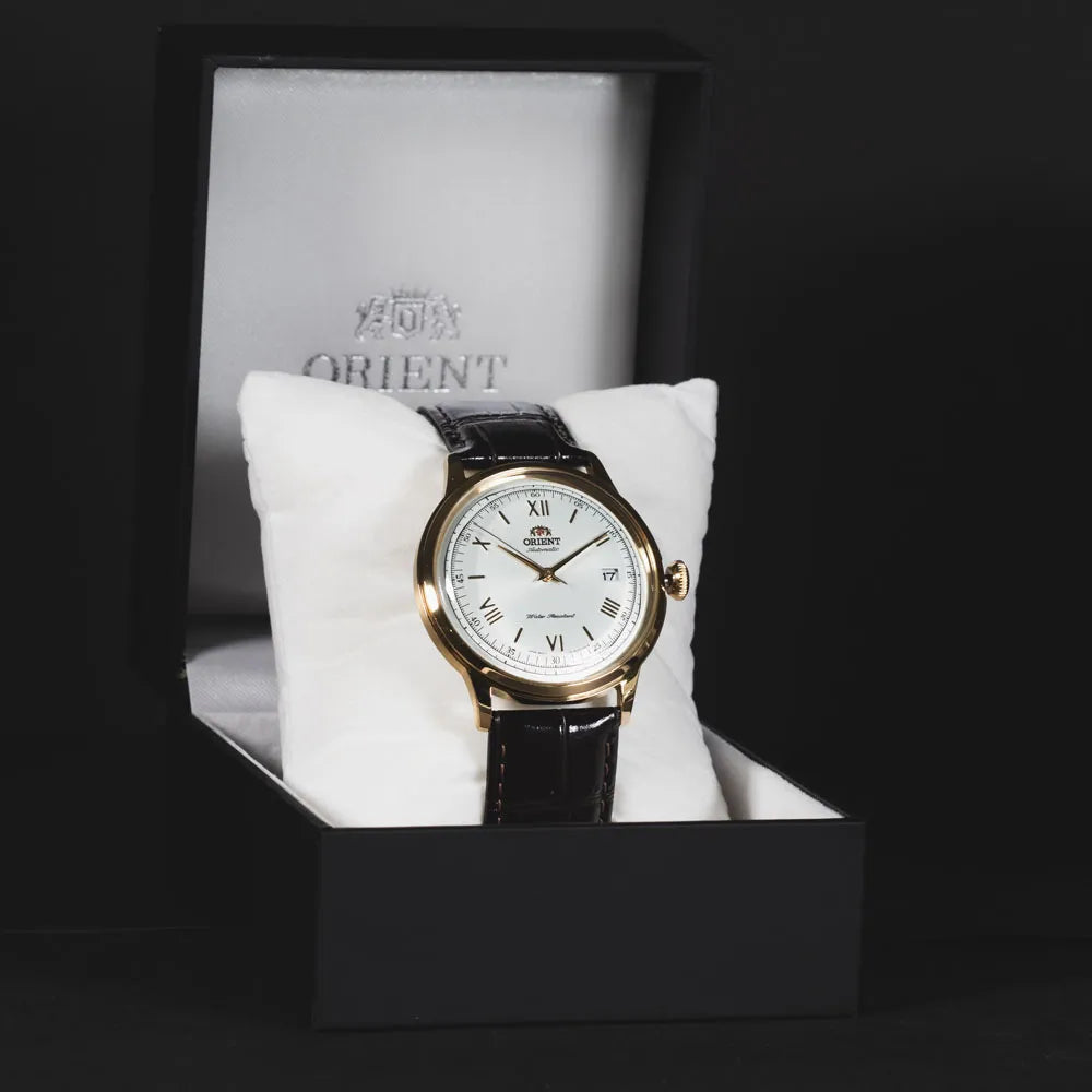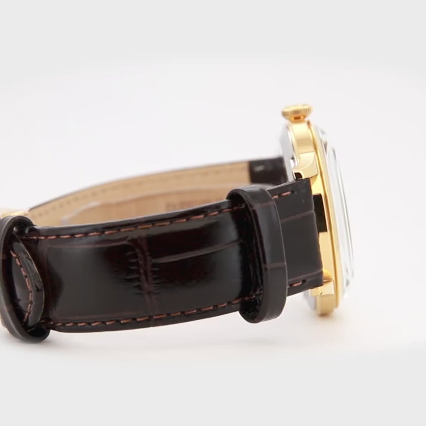 Un classico da abito in chiave rétro: vetro bombato e quadrante curvo dialogano con una grafica a numeri romani e minuteria chemin de fer, dettagli che richiamano i segnatempo da cerimonia. Sfere affusolate e proporzioni bilanciate favoriscono una lettura pulita, mentre la finestra data si integra con discrezione. Cinturini in pelle ampliano le combinazioni, dalle tonalità formali ai toni caldi di nuova ispirazione. Finiture lucide e satinate ne accentuano il profilo, comodo sotto il polsino.
