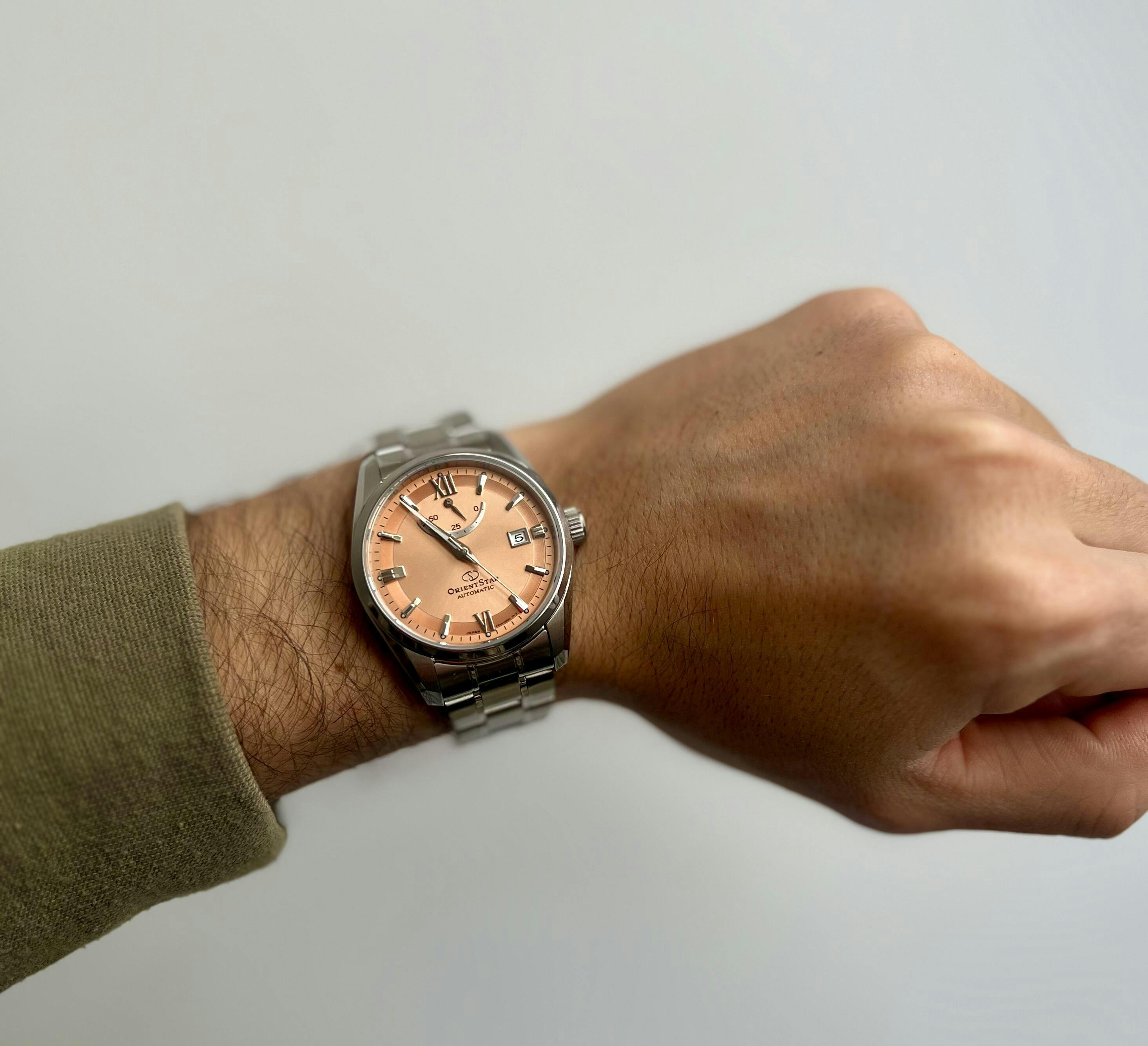 Ein Drei-Zeiger mit Datum, der Klarheit und Maß betont. Das Zifferblatt, je nach Ausführung mit Strahlenmuster oder vertikaler Struktur, trägt aufgesetzte Indizes und eine feine Minuterie, die den Blick geordnet lenkt. Die polierten und satinierten Flächen des Gehäuses, geschützt durch Saphirglas, reflektieren das Licht dezent. Ein Stahlarmband oder Lederbänder erweitern die Stilmöglichkeiten: zeitgenössische Eleganz, klar und natürlich alltagstauglich.