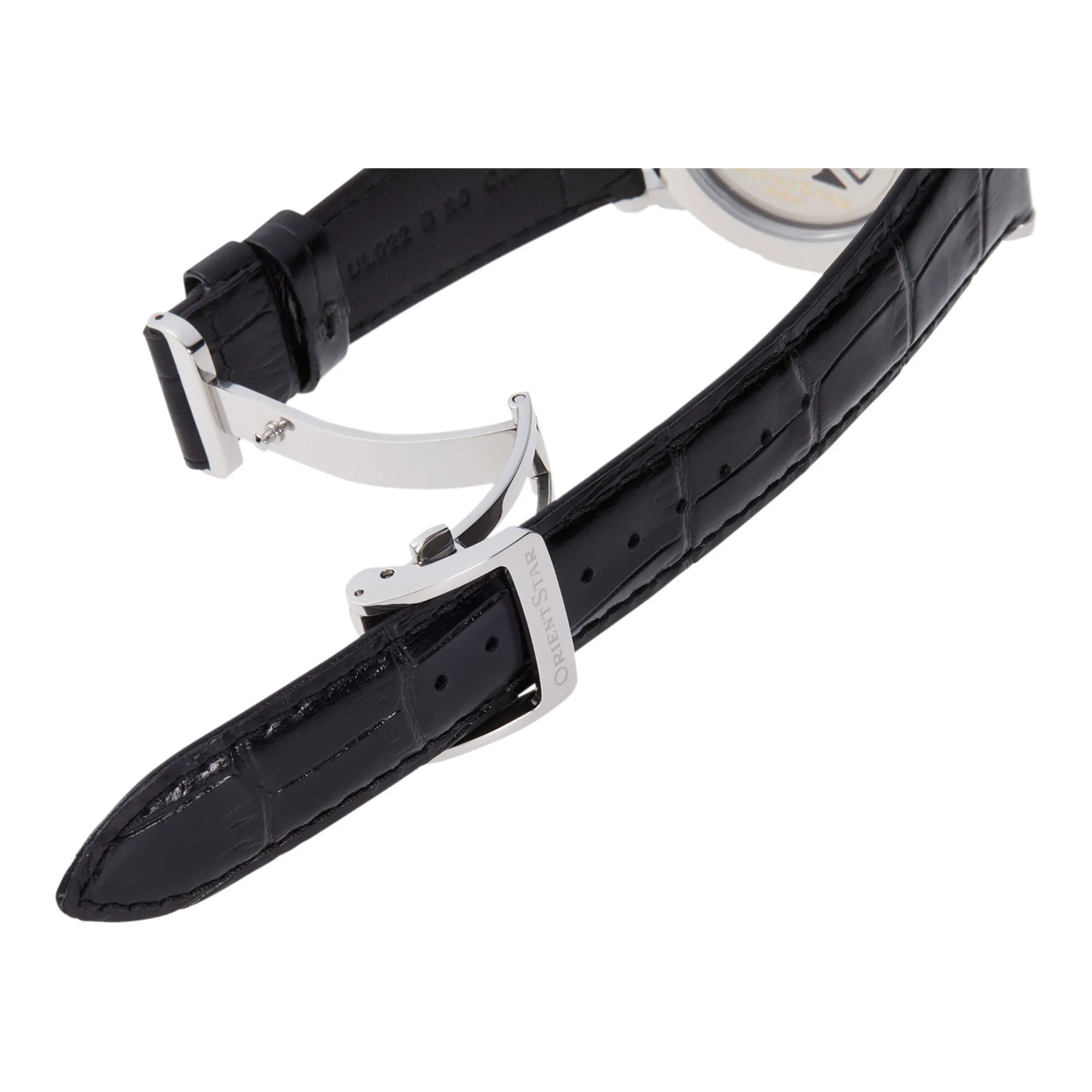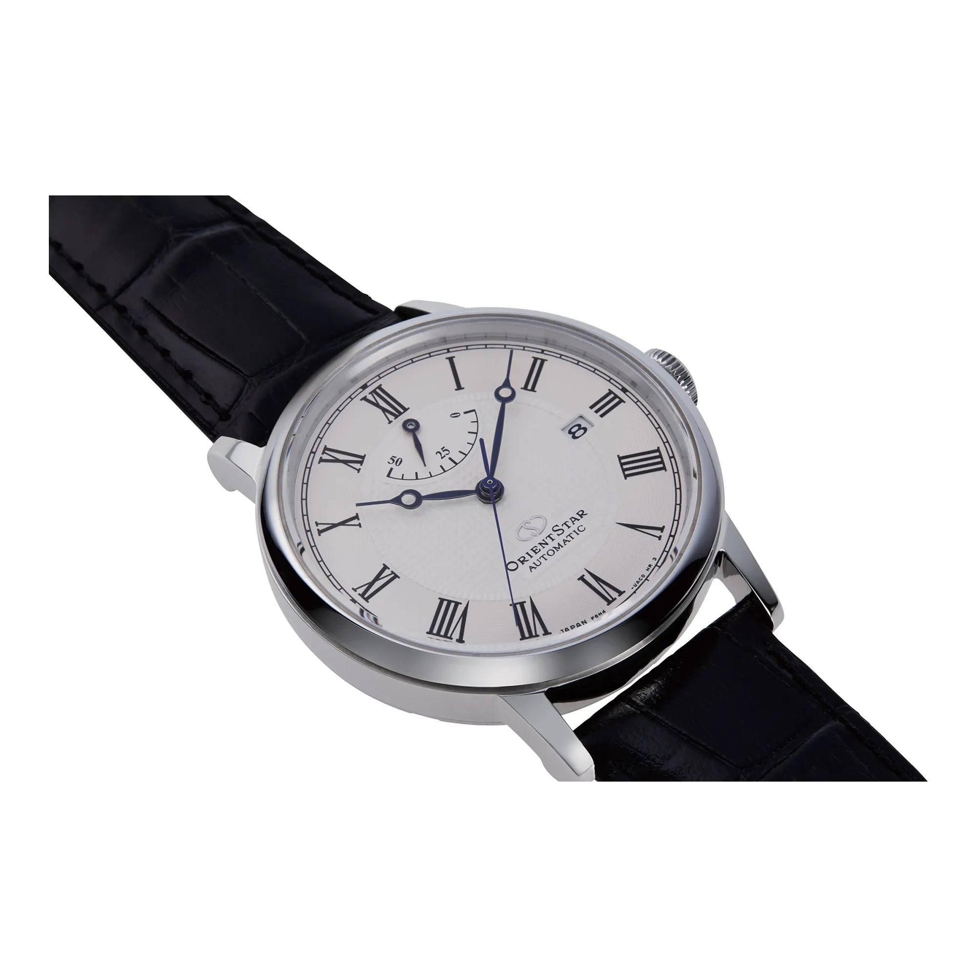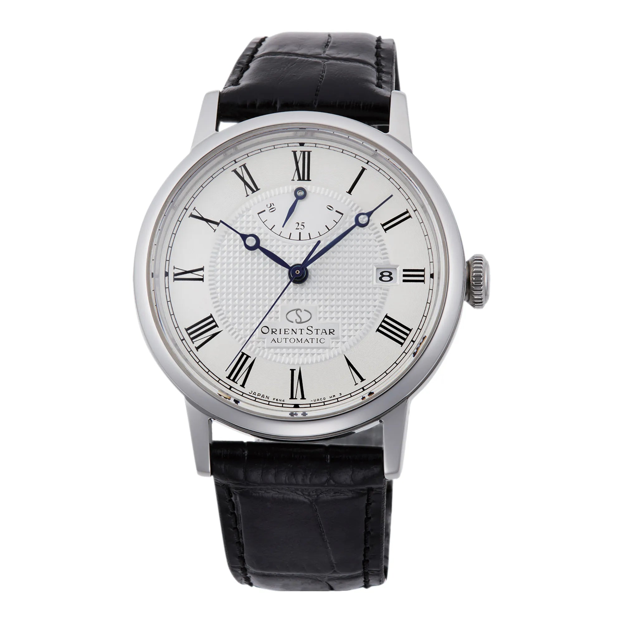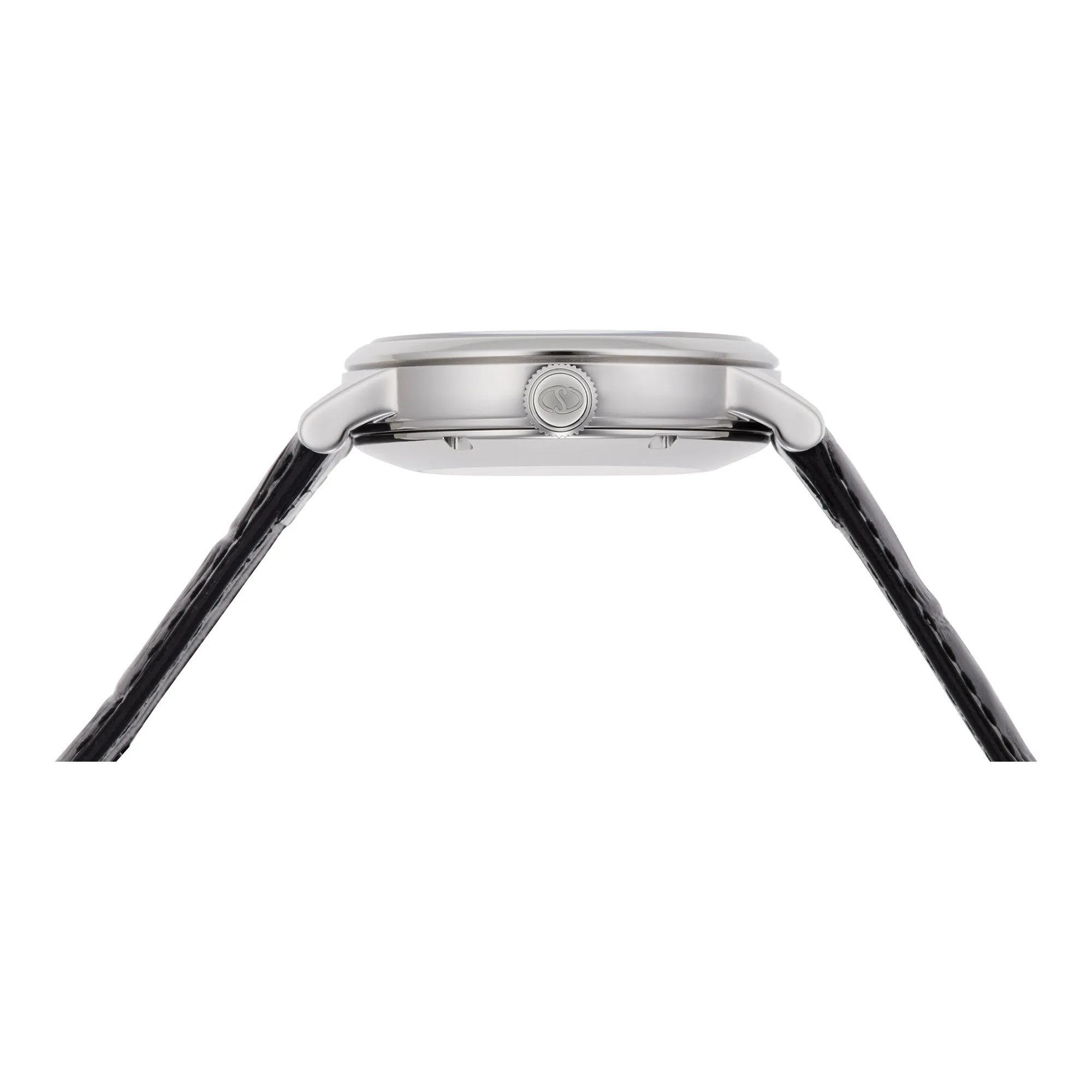Ein Drei-Zeiger-Uhr mit Datum, konzipiert für die tägliche Eleganz. Ein klar gestaltetes Zifferblatt mit linearen Indexen und schlanken Zeigern fördert die Übersichtlichkeit; die diskrete Gangreserveanzeige oben fügt eine Funktion hinzu, ohne die Ordnung des Designs zu stören. Abwechselnde Oberflächen an Gehäuse und Armband, Saphirglas und eine Palette zurückhaltender Farben bestimmen die Vielseitigkeit. Sorgfältige Details wie feine Minuterie und bearbeitete Flächen heben das Licht auf dem Zifferblatt hervor.