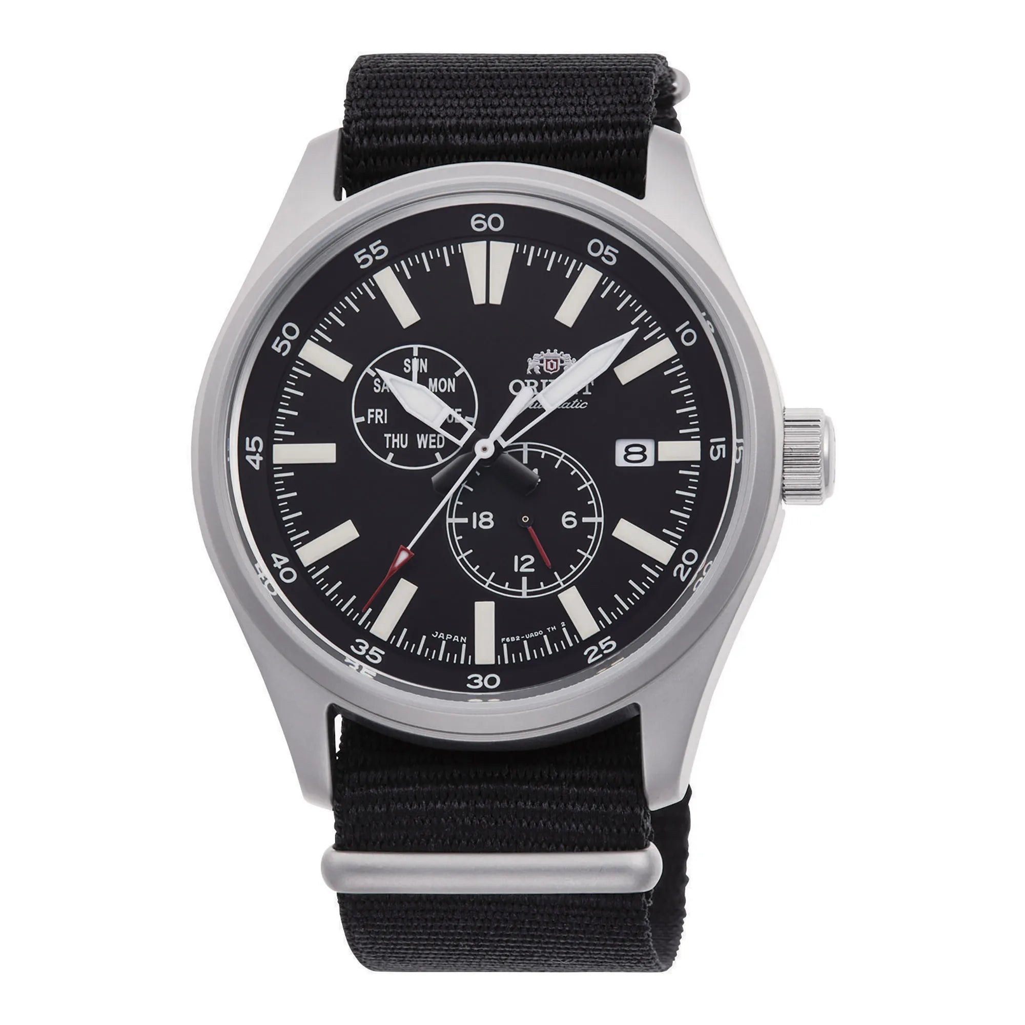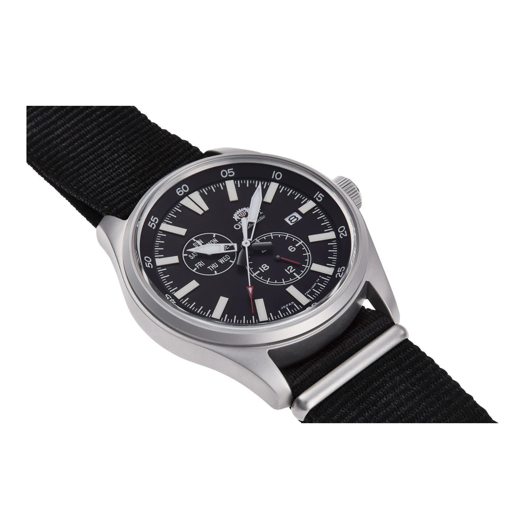 Entdecken Sie die ORIENT Sports Kollektion, ein Synonym für Zuverlässigkeit und Stil des modernen Mannes. Jede ORIENT Uhr verbindet Tradition und Neuerung und bietet robuste, detailverliebte Zeitmesser. Dieses Modell, inspiriert von der Field-Serie, ist für jene gedacht, die einen präzisen und widerstandsfähigen Begleiter suchen, geeignet sowohl für den Alltag als auch für entspannte Momente. Im Inneren ist es mit dem mechanischen Automatikwerk ORIENT Kaliber F6B22 ausgestattet. Mit 22 Rubinsteinen bietet es eine geschätzte Ganggenauigkeit von +25/-15 Sekunden pro Tag. Es verfügt über Automatikaufzug, die Möglichkeit des Handaufzugs und eine Sekundenstoppfunktion für eine genaue Zeiteinstellung. Das Zifferblatt zeigt drei Zeiger sowie Tages- und Datumsanzeige, praktische Funktionen für den täglichen Gebrauch. Das Gehäuse aus rostfreiem Stahl mit einem Durchmesser von 43 mm und einer Höhe von 12 mm verleiht dem Modell eine solide und ausgewogene Präsenz am Handgelenk. Die Wasserdichtigkeit ist bis 100 Meter (WR 100m) gewährleistet, dank der verschraubten Krone und des verschraubten Gehäusebodens, die das Uhrwerk vor Eindringen schützen. Das mineralische Glas, stoßfest, bewahrt das Zifferblatt, während die mit Leuchtmasse behandelten Indizes und Zeiger auch bei schlechten Lichtverhältnissen eine gute Ablesbarkeit sicherstellen. Das Armband ist mit einer Faltschließe mit Drücker ausgestattet, für einen sicheren und bequemen Sitz. Diese Herrenuhr verbindet die Widerstandsfähigkeit eines sportlichen Modells mit einer schlichten und vielseitigen Ästhetik, passend für jeden Anlass. Ein zuverlässiger und gut durchdachter Automatikzeitmesser, ideal für jene, die Funktionalität, solide Verarbeitung und einen schlichten, aber markanten Stil suchen.