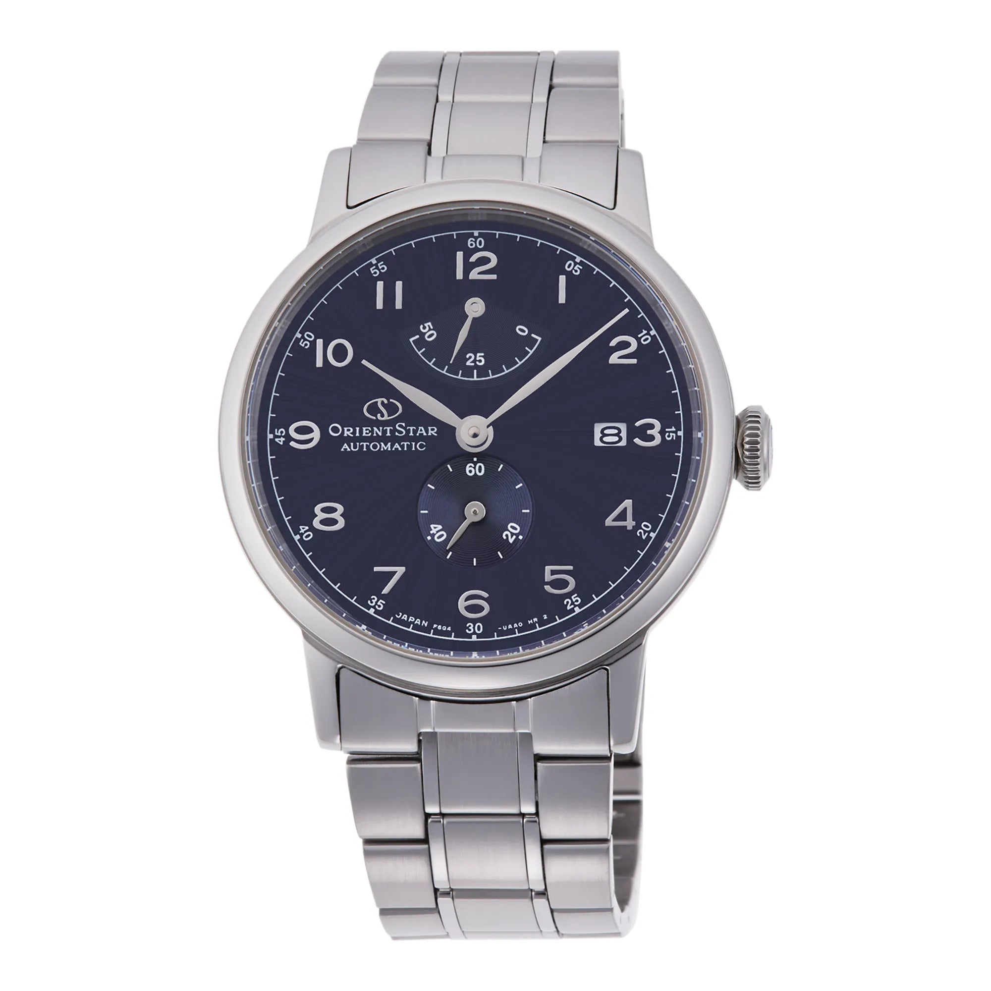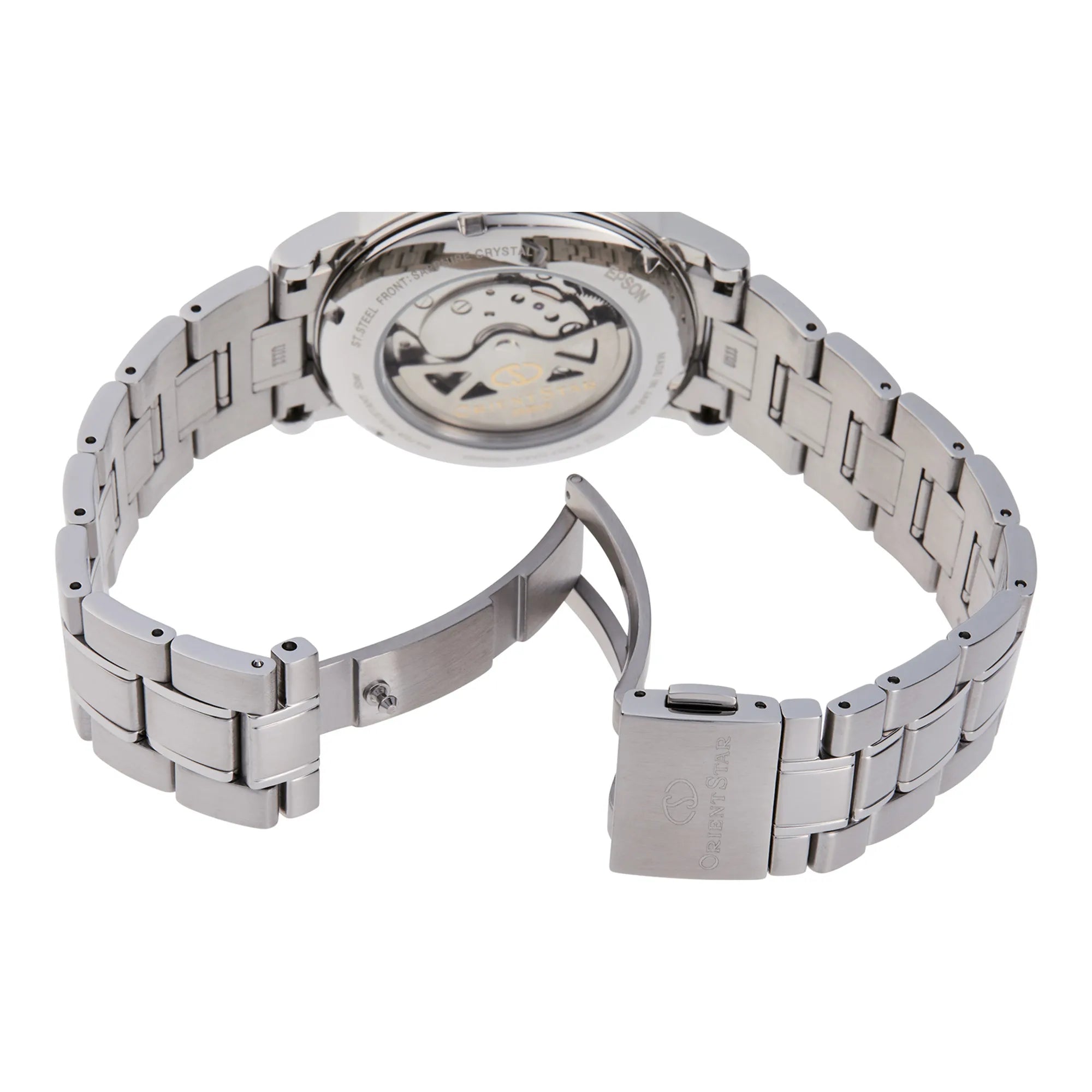 Entdecken Sie die Classic-Familie von ORIENT, wo zeitlose Eleganz und mechanische Präzision in Uhrmacher-Meisterwerken verschmelzen. Die Heritage Gothic Armbanduhr von ORIENT STAR ist ein wahres Stilzeichen, ein edles Accessoire, das die Essenz der japanischen Uhrmachertradition einfängt und sich perfekt für alle eignet, die eine klassische und markante Uhr suchen. Dieses Modell von ORIENT STAR zeichnet sich durch sein rundes Gehäuse aus rostfreiem Stahl mit einem Durchmesser von 38 mm und einer Höhe von 12 mm aus, das ein ideales Gleichgewicht zwischen Präsenz und Tragekomfort am Handgelenk bietet. Die Wasserdichtigkeit bis 50 Meter (WR 50 m) macht sie zu einem verlässlichen Begleiter im Alltag. Das Saphirglas, bekannt für seine außergewöhnliche Kratzfestigkeit, schützt das Zifferblatt und gewährleistet eine makellose Ablesbarkeit über die Zeit. Die Drücker- und Zugkrone sowie der verschraubte Sichtboden offenbaren das pulsierende Herz dieser Luxusuhr und erlauben die Bewunderung der Mechanik des Uhrwerks. Im Inneren schlägt das anspruchsvolle Kaliber F6G42, ein mechanisches Uhrwerk mit automatischem und manuellem Aufzug, veredelt mit 22 Rubinsteinen. Dieses Präzisionsjuwel verfügt über fortschrittliche Funktionen wie die Gangreserveanzeige, die faszinierende Mondphasenanzeige und die Sekundenstoppfunktion, die eine präzise Zeiteinstellung ermöglicht. Mit einer täglichen Gangabweichung von +25/-15 Sekunden garantiert es verlässliche Leistung. Das Gewicht von 73 Gramm trägt zu einem optimalen Tragekomfort bei. Das Armband ist mit einer Faltschließe mit Drücker versehen, die einen sicheren und eleganten Sitz gewährleistet, mit einer Breite von 20 mm und einer Länge von 18 cm. Ideal als elegante Anzuguhr oder als Vintage-Sammleruhr verkörpert das Modell Heritage Gothic traditionellen Stil und erstklassige Handwerkskunst. Jedes Detail ist darauf ausgelegt, ein erstklassiges Uhrmachererlebnis zu bieten. Es wird mit einer Bedienungsanleitung und einer internationalen zweijährigen Garantie geliefert, präsentiert in einer eleganten Originalverpackung von ORIENT STAR.