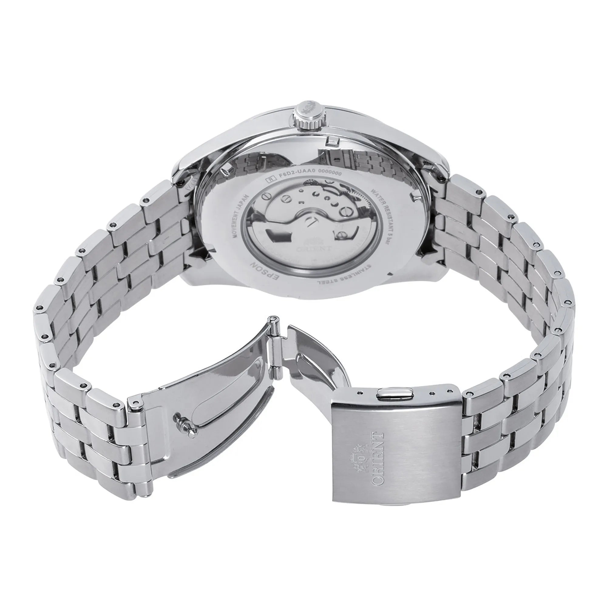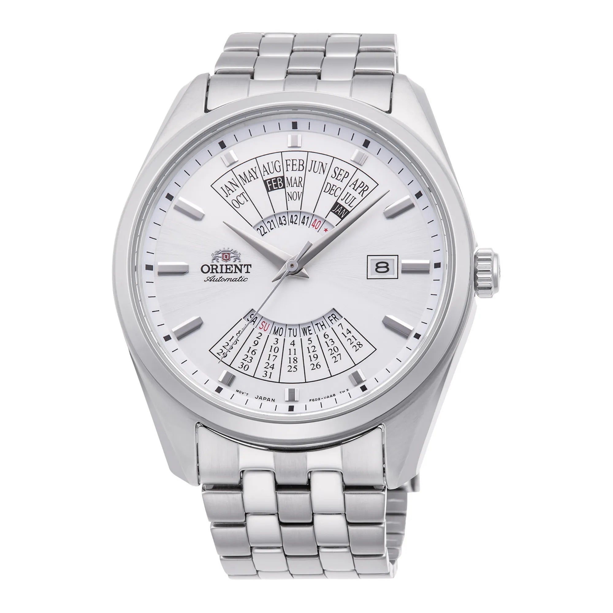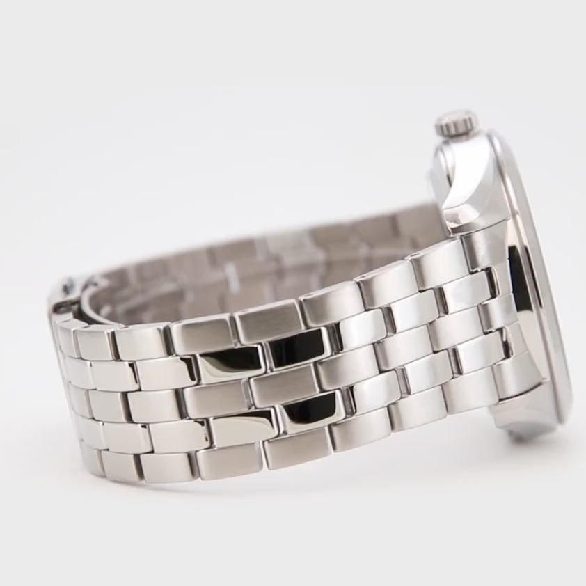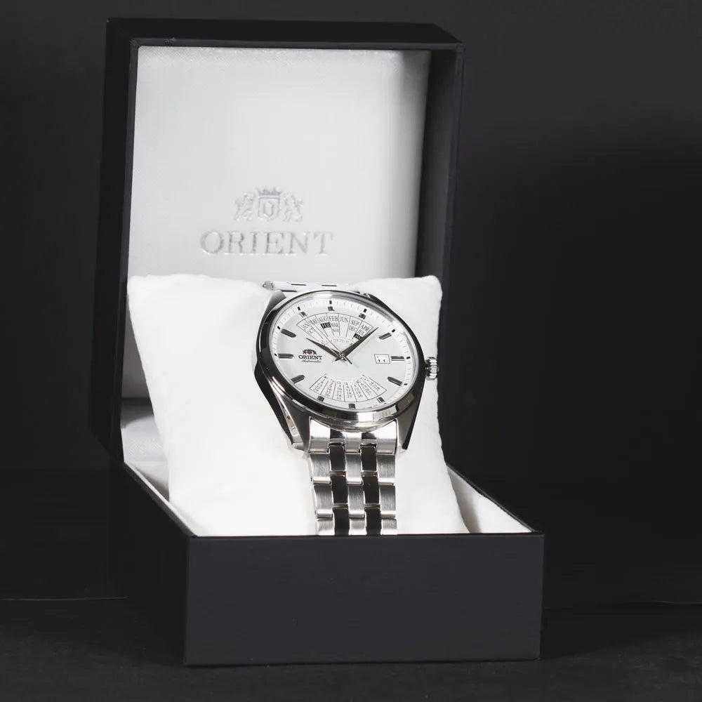 Mehrjahreskalender als charakteristisches Merkmal: Das Zifferblatt integriert eine Skala, die durch Ausrichtung von Jahr und Monat oben sowie Tag und Datum unten eine sofortige Ablesung ermöglicht. Alle Einstellungen erfolgen über die Krone, da keine speziellen Drücker vorhanden sind, und der transparente Gehäuseboden gibt den Blick auf das Manufakturwerk frei. Dreidimensionale Indizes und großzügige Zeiger verbessern die Ablesbarkeit, mit Varianten an Metallarmband oder Lederband.