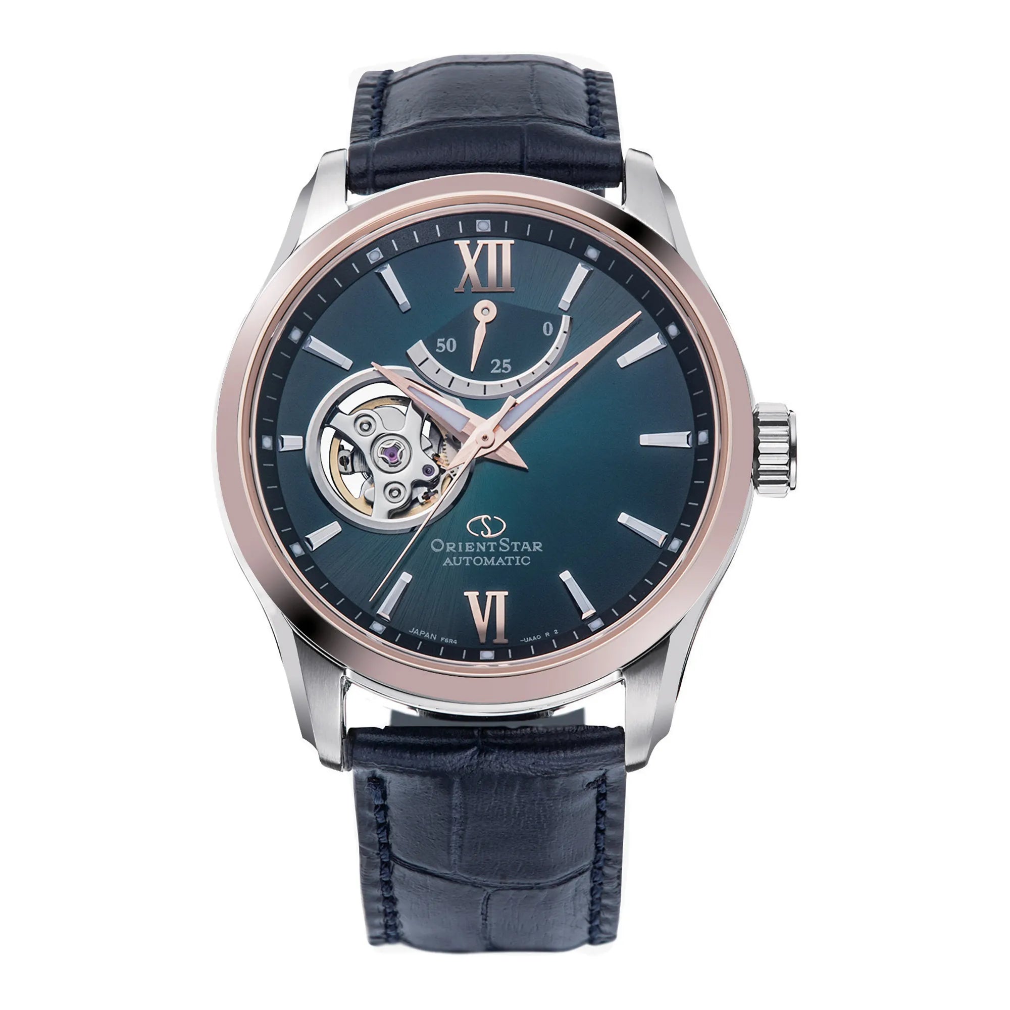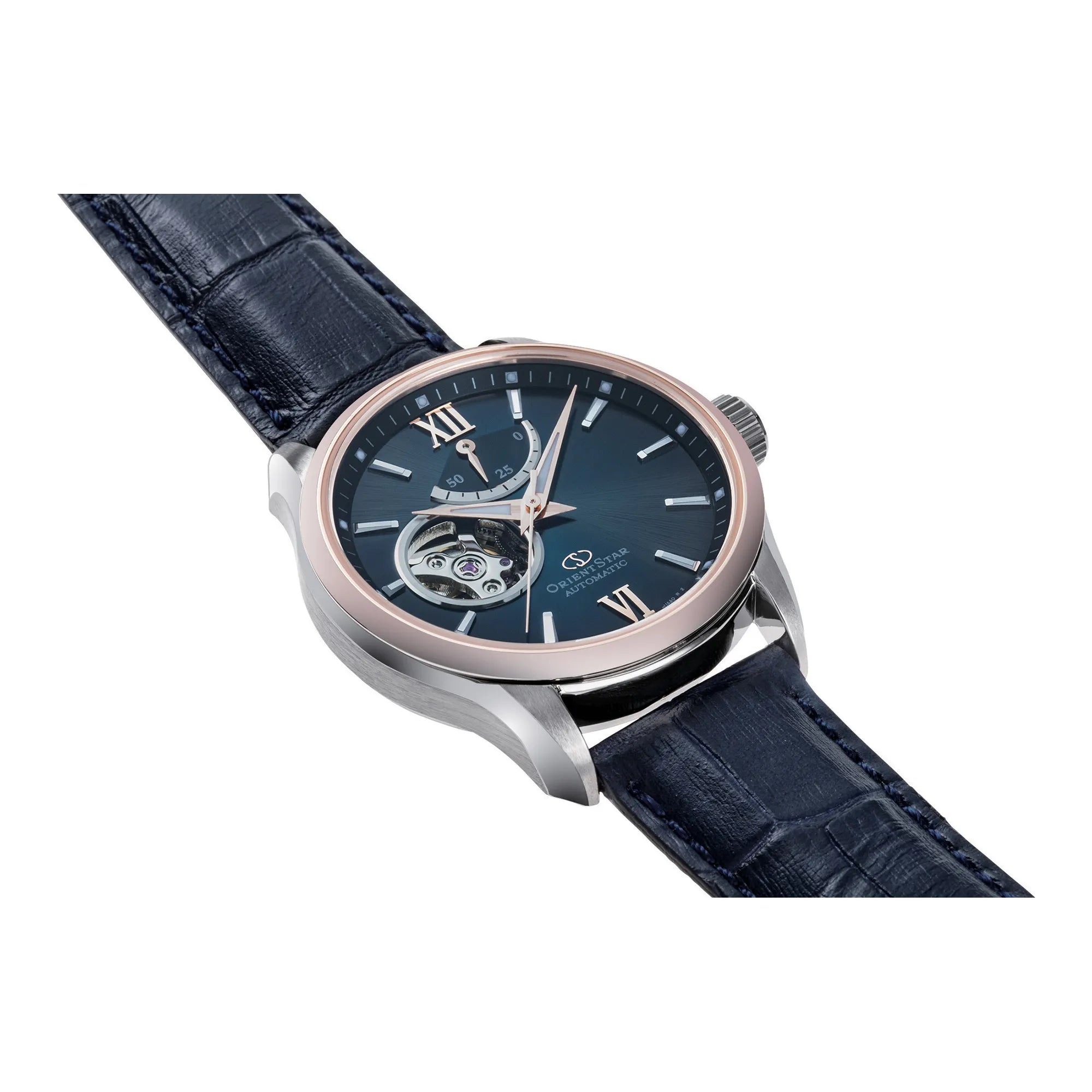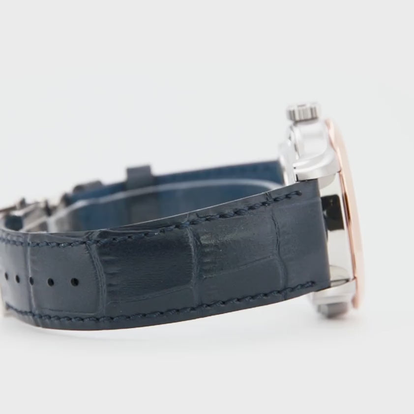 Mechanisches Skelettwerk in zeitgemäßer Ausführung: Die Öffnung auf der linken Zifferblatthälfte zeigt die Unruh, während die Gangreserveanzeige oben Funktionalität und visuelles Tempo hinzufügt. Das mehrschichtige Design mit radialen Veredelungen schafft Tiefe und bewahrt Übersichtlichkeit, mit Leuchtzeigern und Leuchtindexen für eine klare Ablesbarkeit. Saphirglas mit Antireflexbeschichtung und ein transparenter Gehäuseboden unterstreichen die sorgfältige Verarbeitung; Lederarmbänder vervollständigen eine elegante, aber markante Ästhetik.