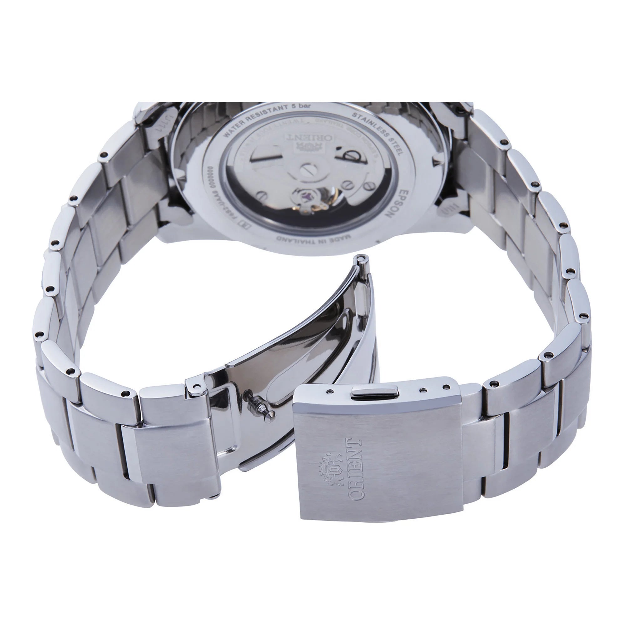 Zifferblatt mit sichtbarem Werk und kleiner Sekunde im Dialog: Das halb-skelettierte Fenster überlagert den Zähler und schafft Tiefe und Rhythmus. Das Gehäuse mit markantem Profil und klarer Gestaltung fördert die Ablesbarkeit, während strahlenförmige Veredelungen und eine Farbpalette von Weiß über Blau und Grün bis Rot die Ästhetik modernisieren. Der transparente Gehäuseboden offenbart das Manufakturwerk. Das Stahlarmband vollendet ein Gleichgewicht zwischen technischem Charakter und alltäglicher Eleganz.