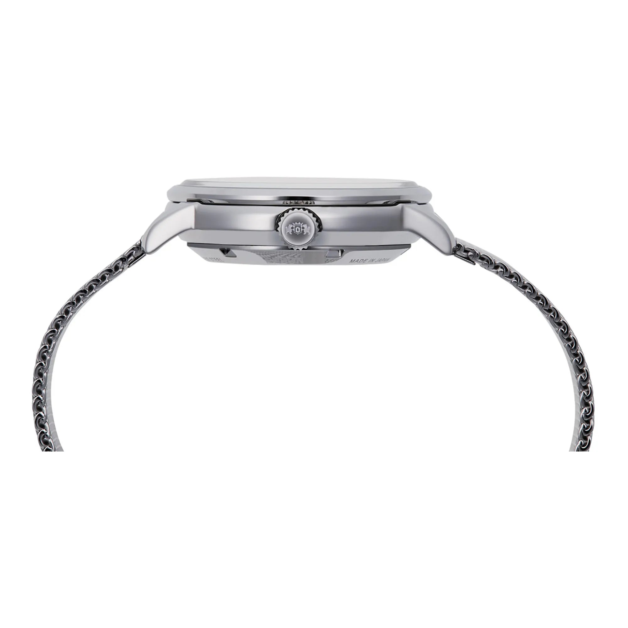 Diese moderne mechanische Automatikuhr mit Handaufzug und einem anspruchsvollen, aber schlichten Erscheinungsbild ist eine präzise Verbindung von Funktionalität und Gestaltung, die sich als bequem tragbar und vielseitig im Alltag erweist. Hier in der Ausführung mit milanesischem Gliederarmband und dunkelgrauem Zifferblatt.