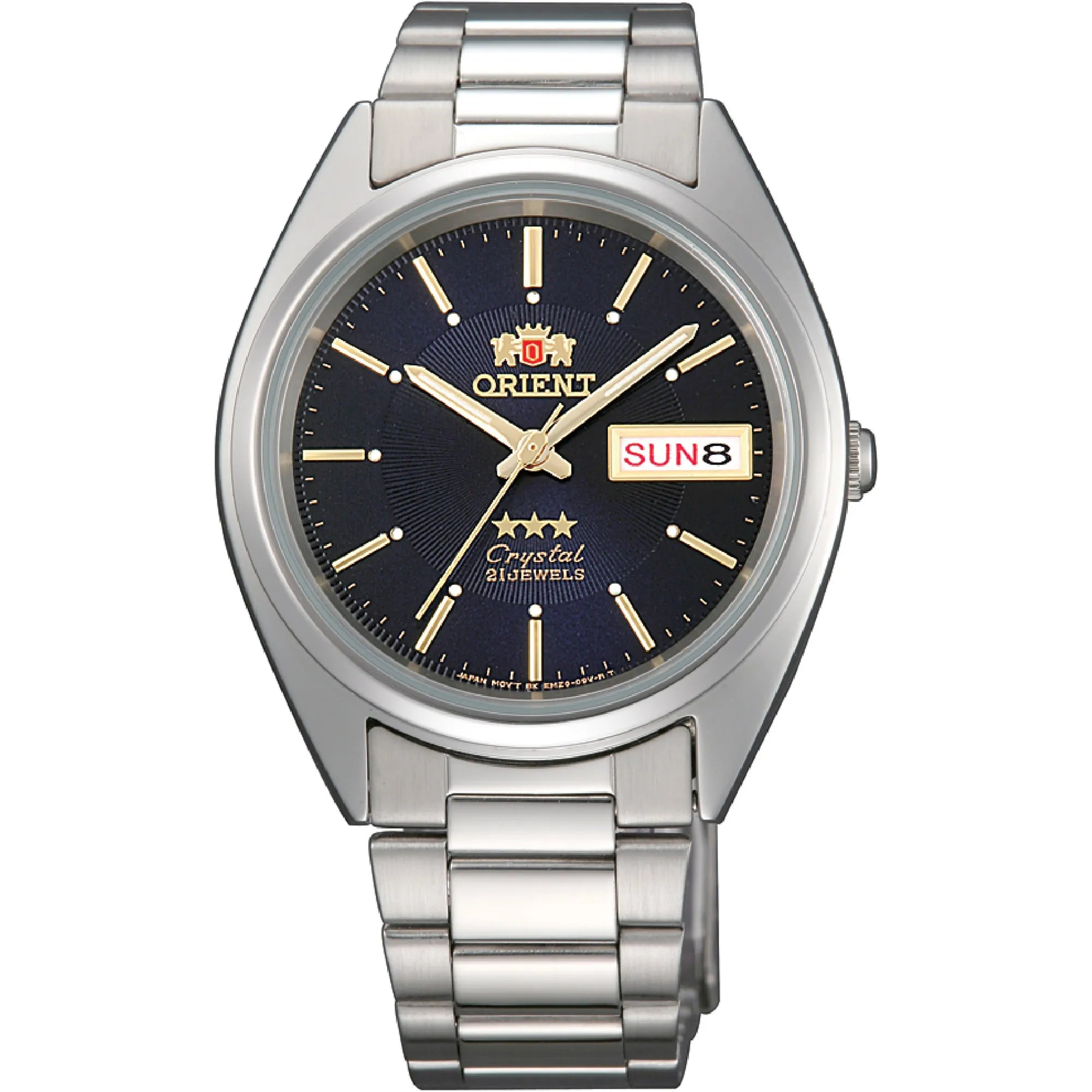 Entdecken Sie die legendäre 3 Star Kollektion von ORIENT, ein Symbol für Zuverlässigkeit und Stil, das Generationen überdauert und seine Identität bewahrt hat. Jedes Modell dieser Linie verkörpert die Philosophie der Marke, die auf Genauigkeit, Langlebigkeit und Detailpflege ausgerichtet ist. Eine Uhr, die klassische Ästhetik mit soliden Leistungen verbindet und sich ideal eignet, um jeden Moment des Tages zu begleiten. Das runde Gehäuse aus rostfreiem Stahl mit einem Durchmesser von 37 mm und einer Höhe von 11 mm bietet ausgewogene Proportionen und optimalen Tragekomfort am Handgelenk. Das Mineralglas schützt das Zifferblatt, während die Druckkrone eine einfache Einstellung ermöglicht. Die Wasserdichtigkeit bestätigt die Zuverlässigkeit im Alltag und macht sie für verschiedene Situationen geeignet. Das automatische ORIENT Kaliber F4902 mit 21 Rubinsteinen garantiert eine geschätzte Ganggenauigkeit von +25/-15 Sekunden pro Tag und einen gleichmäßigen Lauf. Dieses mechanische Werk wird durch die natürliche Bewegung des Handgelenks aufgezogen, wodurch Batterien überflüssig sind. Das Zifferblatt mit Drei-Zeiger-Anzeige integriert einen Doppelkalendar mit Tages- und Datumsanzeige, ein praktisches und funktionales Detail, das den Alltagsnutzen erhöht. Die Ablesbarkeit ist auch bei schlechten Lichtverhältnissen dank der mit Leuchtmasse behandelten Indizes und Zeiger gewährleistet. Das 19 mm breite Stahlarmband, geeignet für Handgelenke bis 19 cm Umfang, ist mit einer klappbaren Faltschließe ausgestattet, die Stabilität und Komfort sichert. Mit seinem schlichten und zeitlosen Design passt das Modell 3 Star auf natürliche Weise zu sowohl formellen als auch legeren Stilen und bewahrt stets einen Hauch von wesentlicher Eleganz. Eine automatische Uhr für jene, die Wert auf handwerkliche Qualität und die Tradition von ORIENT legen, die Funktionalität und Vintage-Charme vereint. Ein zuverlässiger und zeitloser Zeitmesser, perfekt für alle, die einen langlebigen Begleiter mit authentischem Stil suchen.