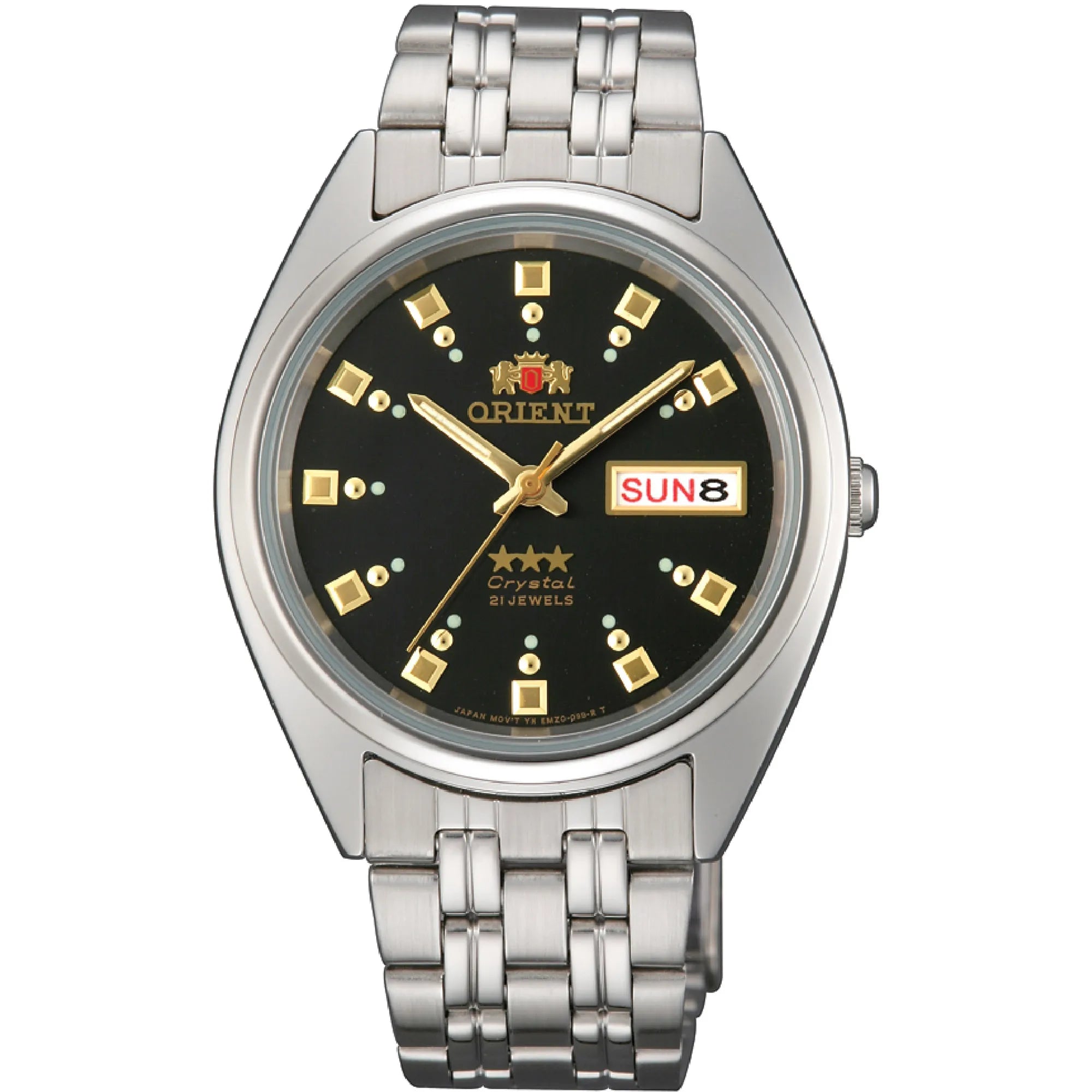 Entdecken Sie die legendäre 3 Star Kollektion von ORIENT, ein Symbol für Zuverlässigkeit und Stil, das Generationen überdauert und seine Identität bewahrt hat. Jedes Modell dieser Linie verkörpert die Philosophie der Marke, die auf Genauigkeit, Langlebigkeit und Detailpflege ausgerichtet ist. Eine Uhr, die klassische Ästhetik mit soliden Leistungen verbindet und sich ideal eignet, um jeden Moment des Tages zu begleiten. Das runde Gehäuse aus rostfreiem Stahl mit einem Durchmesser von 37 mm und einer Höhe von 11 mm bietet ausgewogene Proportionen und optimalen Tragekomfort am Handgelenk. Das Mineralglas schützt das Zifferblatt, während die Druckkrone eine einfache Einstellung ermöglicht. Die Wasserdichtigkeit bestätigt die Zuverlässigkeit im Alltag und macht sie für verschiedene Situationen geeignet. Das automatische ORIENT Kaliber F4902 mit 21 Rubinsteinen garantiert eine geschätzte Ganggenauigkeit von +25/-15 Sekunden pro Tag und einen gleichmäßigen Lauf. Dieses mechanische Werk wird durch die natürliche Bewegung des Handgelenks aufgezogen, wodurch Batterien überflüssig sind. Das Zifferblatt mit Drei-Zeiger-Anzeige integriert einen Doppelkalendar mit Tages- und Datumsanzeige, ein praktisches und funktionales Detail, das den Alltagsnutzen erhöht. Die Ablesbarkeit ist auch bei schlechten Lichtverhältnissen dank der mit Leuchtmasse behandelten Indizes und Zeiger gewährleistet. Das 19 mm breite Stahlarmband, geeignet für Handgelenke bis 19 cm Umfang, ist mit einer klappbaren Faltschließe ausgestattet, die Stabilität und Komfort sichert. Mit seinem schlichten und zeitlosen Design passt das Modell 3 Star auf natürliche Weise zu sowohl formellen als auch legeren Stilen und bewahrt stets einen Hauch von wesentlicher Eleganz. Eine automatische Uhr für jene, die Wert auf handwerkliche Qualität und die Tradition von ORIENT legen, die Funktionalität und Vintage-Charme vereint. Ein zuverlässiger und zeitloser Zeitmesser, perfekt für alle, die einen langlebigen Begleiter mit authentischem Stil suchen.