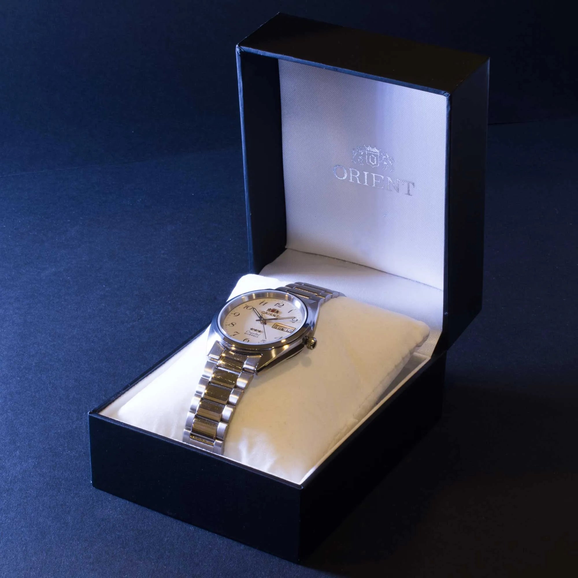 Entdecken Sie die legendäre 3 Star Kollektion von ORIENT, ein Symbol für Zuverlässigkeit und Stil, das Generationen überdauert und seine Identität bewahrt hat. Jedes Modell dieser Linie verkörpert die Philosophie der Marke, die auf Genauigkeit, Langlebigkeit und Detailpflege ausgerichtet ist. Eine Uhr, die klassische Ästhetik mit soliden Leistungen verbindet und sich ideal eignet, um jeden Moment des Tages zu begleiten. Das runde Gehäuse aus rostfreiem Stahl mit einem Durchmesser von 37 mm und einer Höhe von 11 mm bietet ausgewogene Proportionen und optimalen Tragekomfort am Handgelenk. Das Mineralglas schützt das Zifferblatt, während die Druckkrone eine einfache Einstellung ermöglicht. Die Wasserdichtigkeit bestätigt die Zuverlässigkeit im Alltag und macht sie für verschiedene Situationen geeignet. Das automatische ORIENT Kaliber F4902 mit 21 Rubinsteinen garantiert eine geschätzte Ganggenauigkeit von +25/-15 Sekunden pro Tag und einen gleichmäßigen Lauf. Dieses mechanische Werk wird durch die natürliche Bewegung des Handgelenks aufgezogen, wodurch Batterien überflüssig sind. Das Zifferblatt mit Drei-Zeiger-Anzeige integriert einen Doppelkalendar mit Tages- und Datumsanzeige, ein praktisches und funktionales Detail, das den Alltagsnutzen erhöht. Die Ablesbarkeit ist auch bei schlechten Lichtverhältnissen dank der mit Leuchtmasse behandelten Indizes und Zeiger gewährleistet. Das 19 mm breite Stahlarmband, geeignet für Handgelenke bis 19 cm Umfang, ist mit einer klappbaren Faltschließe ausgestattet, die Stabilität und Komfort sichert. Mit seinem schlichten und zeitlosen Design passt das Modell 3 Star auf natürliche Weise zu sowohl formellen als auch legeren Stilen und bewahrt stets einen Hauch von wesentlicher Eleganz. Eine automatische Uhr für jene, die Wert auf handwerkliche Qualität und die Tradition von ORIENT legen, die Funktionalität und Vintage-Charme vereint. Ein zuverlässiger und zeitloser Zeitmesser, perfekt für alle, die einen langlebigen Begleiter mit authentischem Stil suchen.