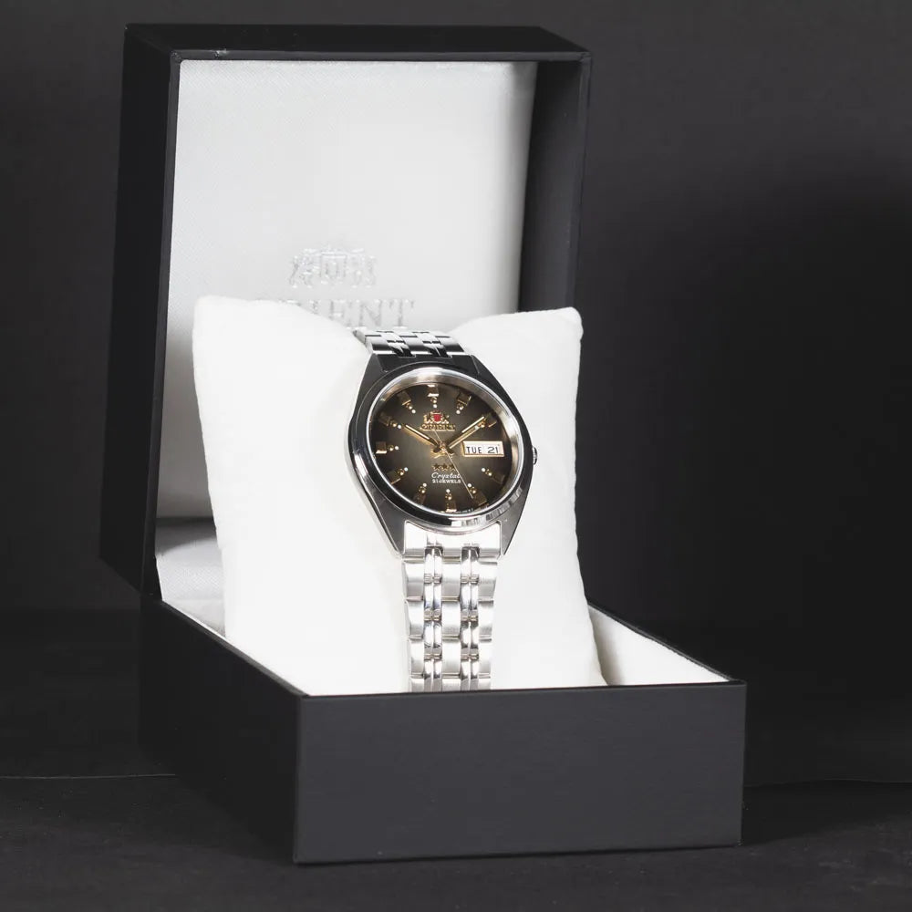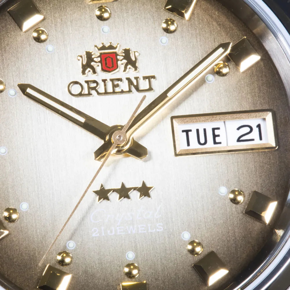 Entdecken Sie die legendäre 3 Star Kollektion von ORIENT, ein Symbol für Zuverlässigkeit und Stil, das Generationen überdauert und seine Identität bewahrt hat. Jedes Modell dieser Linie verkörpert die Philosophie der Marke, die auf Genauigkeit, Langlebigkeit und Detailpflege ausgerichtet ist. Eine Uhr, die klassische Ästhetik mit soliden Leistungen verbindet und sich ideal eignet, um jeden Moment des Tages zu begleiten. Das runde Gehäuse aus rostfreiem Stahl mit einem Durchmesser von 37 mm und einer Höhe von 11 mm bietet ausgewogene Proportionen und optimalen Tragekomfort am Handgelenk. Das Mineralglas schützt das Zifferblatt, während die Druckkrone eine einfache Einstellung ermöglicht. Die Wasserdichtigkeit bestätigt die Zuverlässigkeit im Alltag und macht sie für verschiedene Situationen geeignet. Das automatische ORIENT Kaliber F4902 mit 21 Rubinsteinen garantiert eine geschätzte Ganggenauigkeit von +25/-15 Sekunden pro Tag und einen gleichmäßigen Lauf. Dieses mechanische Werk wird durch die natürliche Bewegung des Handgelenks aufgezogen, wodurch Batterien überflüssig sind. Das Zifferblatt mit Drei-Zeiger-Anzeige integriert einen Doppelkalendar mit Tages- und Datumsanzeige, ein praktisches und funktionales Detail, das den Alltagsnutzen erhöht. Die Ablesbarkeit ist auch bei schlechten Lichtverhältnissen dank der mit Leuchtmasse behandelten Indizes und Zeiger gewährleistet. Das 19 mm breite Stahlarmband, geeignet für Handgelenke bis 19 cm Umfang, ist mit einer klappbaren Faltschließe ausgestattet, die Stabilität und Komfort sichert. Mit seinem schlichten und zeitlosen Design passt das Modell 3 Star auf natürliche Weise zu sowohl formellen als auch legeren Stilen und bewahrt stets einen Hauch von wesentlicher Eleganz. Eine automatische Uhr für jene, die Wert auf handwerkliche Qualität und die Tradition von ORIENT legen, die Funktionalität und Vintage-Charme vereint. Ein zuverlässiger und zeitloser Zeitmesser, perfekt für alle, die einen langlebigen Begleiter mit authentischem Stil suchen.