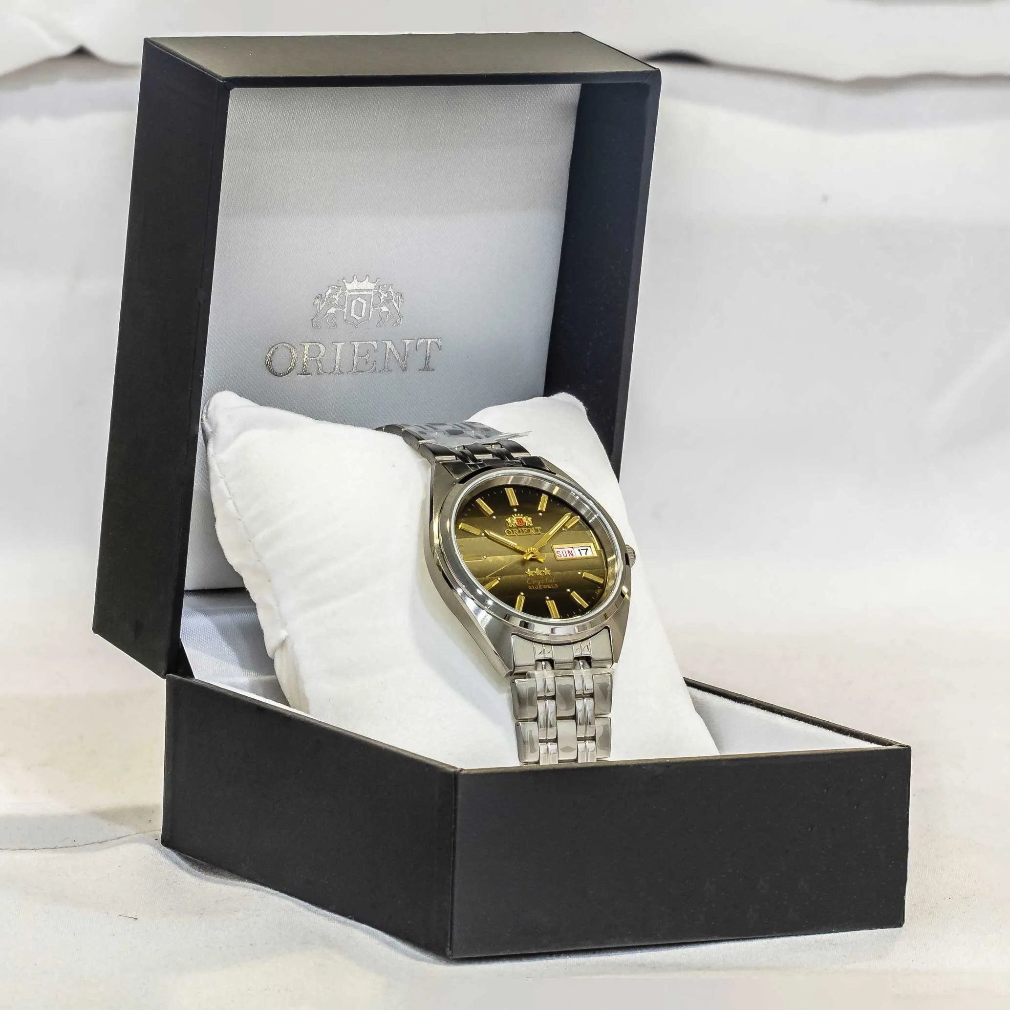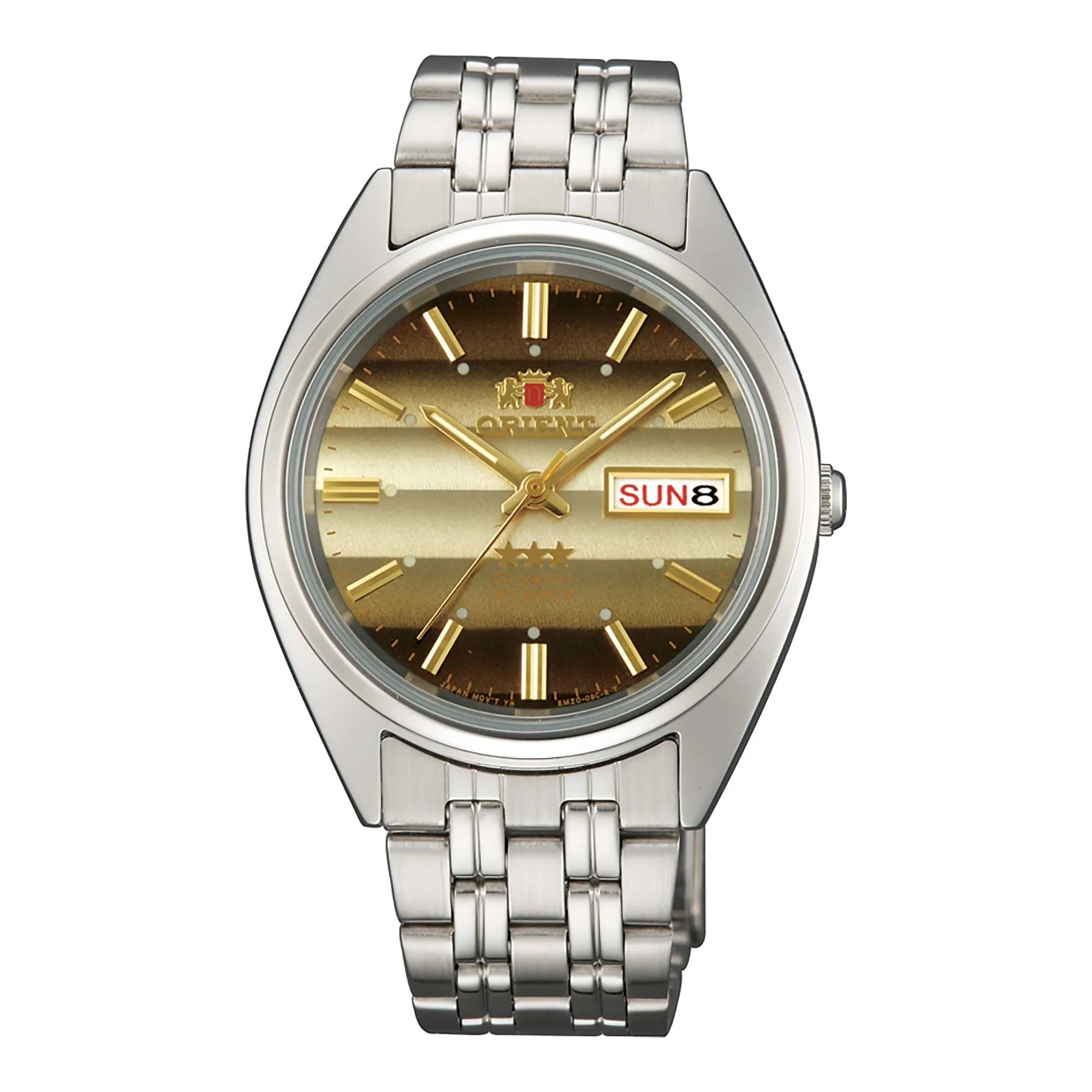 Entdecken Sie die legendäre 3 Star Kollektion von ORIENT, ein Symbol für Zuverlässigkeit und Stil, das Generationen überdauert und seine Identität bewahrt hat. Jedes Modell dieser Linie verkörpert die Philosophie der Marke, die auf Genauigkeit, Langlebigkeit und Detailpflege ausgerichtet ist. Eine Uhr, die klassische Ästhetik mit soliden Leistungen verbindet und sich ideal eignet, um jeden Moment des Tages zu begleiten. Das runde Gehäuse aus rostfreiem Stahl mit einem Durchmesser von 37 mm und einer Höhe von 11 mm bietet ausgewogene Proportionen und optimalen Tragekomfort am Handgelenk. Das Mineralglas schützt das Zifferblatt, während die Druckkrone eine einfache Einstellung ermöglicht. Die Wasserdichtigkeit bestätigt die Zuverlässigkeit im Alltag und macht sie für verschiedene Situationen geeignet. Das automatische ORIENT Kaliber F4902 mit 21 Rubinsteinen garantiert eine geschätzte Ganggenauigkeit von +25/-15 Sekunden pro Tag und einen gleichmäßigen Lauf. Dieses mechanische Werk wird durch die natürliche Bewegung des Handgelenks aufgezogen, wodurch Batterien überflüssig sind. Das Zifferblatt mit Drei-Zeiger-Anzeige integriert einen Doppelkalendar mit Tages- und Datumsanzeige, ein praktisches und funktionales Detail, das den Alltagsnutzen erhöht. Die Ablesbarkeit ist auch bei schlechten Lichtverhältnissen dank der mit Leuchtmasse behandelten Indizes und Zeiger gewährleistet. Das 19 mm breite Stahlarmband, geeignet für Handgelenke bis 19 cm Umfang, ist mit einer klappbaren Faltschließe ausgestattet, die Stabilität und Komfort sichert. Mit seinem schlichten und zeitlosen Design passt das Modell 3 Star auf natürliche Weise zu sowohl formellen als auch legeren Stilen und bewahrt stets einen Hauch von wesentlicher Eleganz. Eine automatische Uhr für jene, die Wert auf handwerkliche Qualität und die Tradition von ORIENT legen, die Funktionalität und Vintage-Charme vereint. Ein zuverlässiger und zeitloser Zeitmesser, perfekt für alle, die einen langlebigen Begleiter mit authentischem Stil suchen.