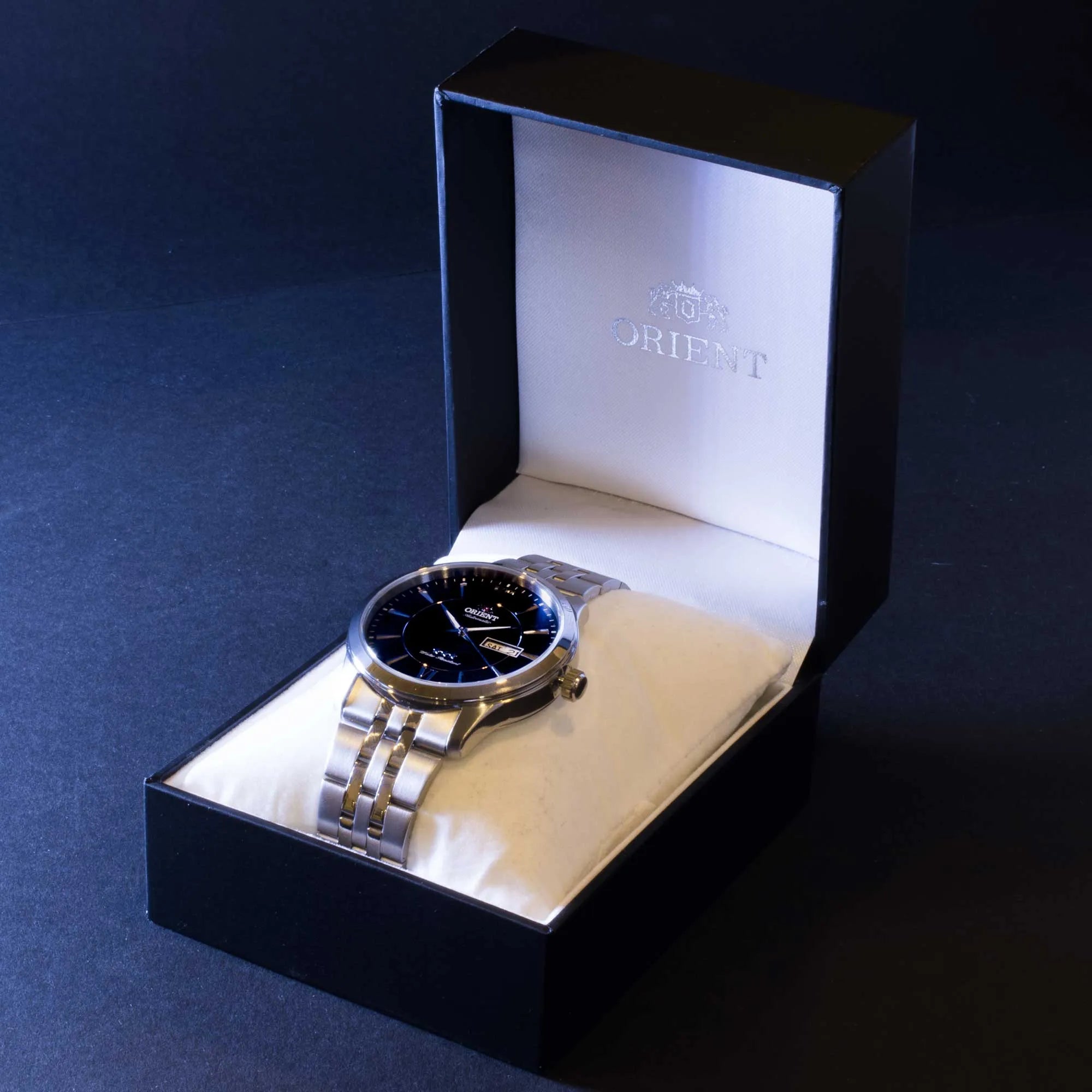 Entdecken Sie die legendäre 3 Star Kollektion von ORIENT, ein Symbol für Zuverlässigkeit und Stil, das Generationen überdauert und seine Identität bewahrt hat. Jedes Modell dieser Linie verkörpert die Philosophie der Marke, die auf Genauigkeit, Langlebigkeit und Detailpflege ausgerichtet ist. Eine Uhr, die klassische Ästhetik mit soliden Leistungen verbindet und sich ideal eignet, um jeden Moment des Tages zu begleiten. Das runde Gehäuse aus rostfreiem Stahl mit einem Durchmesser von 37 mm und einer Höhe von 11 mm bietet ausgewogene Proportionen und optimalen Tragekomfort am Handgelenk. Das Mineralglas schützt das Zifferblatt, während die Druckkrone eine einfache Einstellung ermöglicht. Die Wasserdichtigkeit bestätigt die Zuverlässigkeit im Alltag und macht sie für verschiedene Situationen geeignet. Das automatische ORIENT Kaliber F4902 mit 21 Rubinsteinen garantiert eine geschätzte Ganggenauigkeit von +25/-15 Sekunden pro Tag und einen gleichmäßigen Lauf. Dieses mechanische Werk wird durch die natürliche Bewegung des Handgelenks aufgezogen, wodurch Batterien überflüssig sind. Das Zifferblatt mit Drei-Zeiger-Anzeige integriert einen Doppelkalendar mit Tages- und Datumsanzeige, ein praktisches und funktionales Detail, das den Alltagsnutzen erhöht. Die Ablesbarkeit ist auch bei schlechten Lichtverhältnissen dank der mit Leuchtmasse behandelten Indizes und Zeiger gewährleistet. Das 19 mm breite Stahlarmband, geeignet für Handgelenke bis 19 cm Umfang, ist mit einer klappbaren Faltschließe ausgestattet, die Stabilität und Komfort sichert. Mit seinem schlichten und zeitlosen Design passt das Modell 3 Star auf natürliche Weise zu sowohl formellen als auch legeren Stilen und bewahrt stets einen Hauch von wesentlicher Eleganz. Eine automatische Uhr für jene, die Wert auf handwerkliche Qualität und die Tradition von ORIENT legen, die Funktionalität und Vintage-Charme vereint. Ein zuverlässiger und zeitloser Zeitmesser, perfekt für alle, die einen langlebigen Begleiter mit authentischem Stil suchen.