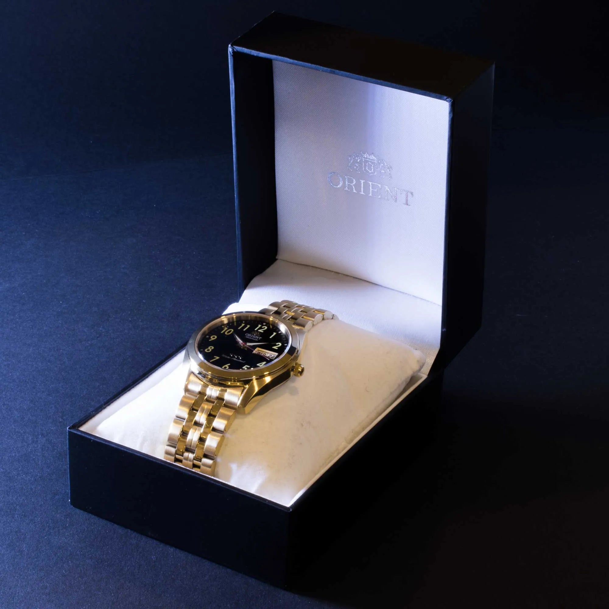 Entdecken Sie die legendäre 3 Star Kollektion von ORIENT, ein Symbol für Zuverlässigkeit und Stil, das Generationen überdauert und seine Identität bewahrt hat. Jedes Modell dieser Linie verkörpert die Philosophie der Marke, die auf Genauigkeit, Langlebigkeit und Detailpflege ausgerichtet ist. Eine Uhr, die klassische Ästhetik mit soliden Leistungen verbindet und sich ideal eignet, um jeden Moment des Tages zu begleiten. Das runde Gehäuse aus rostfreiem Stahl mit einem Durchmesser von 37 mm und einer Höhe von 11 mm bietet ausgewogene Proportionen und optimalen Tragekomfort am Handgelenk. Das Mineralglas schützt das Zifferblatt, während die Druckkrone eine einfache Einstellung ermöglicht. Die Wasserdichtigkeit bestätigt die Zuverlässigkeit im Alltag und macht sie für verschiedene Situationen geeignet. Das automatische ORIENT Kaliber F4902 mit 21 Rubinsteinen garantiert eine geschätzte Ganggenauigkeit von +25/-15 Sekunden pro Tag und einen gleichmäßigen Lauf. Dieses mechanische Werk wird durch die natürliche Bewegung des Handgelenks aufgezogen, wodurch Batterien überflüssig sind. Das Zifferblatt mit Drei-Zeiger-Anzeige integriert einen Doppelkalendar mit Tages- und Datumsanzeige, ein praktisches und funktionales Detail, das den Alltagsnutzen erhöht. Die Ablesbarkeit ist auch bei schlechten Lichtverhältnissen dank der mit Leuchtmasse behandelten Indizes und Zeiger gewährleistet. Das 19 mm breite Stahlarmband, geeignet für Handgelenke bis 19 cm Umfang, ist mit einer klappbaren Faltschließe ausgestattet, die Stabilität und Komfort sichert. Mit seinem schlichten und zeitlosen Design passt das Modell 3 Star auf natürliche Weise zu sowohl formellen als auch legeren Stilen und bewahrt stets einen Hauch von wesentlicher Eleganz. Eine automatische Uhr für jene, die Wert auf handwerkliche Qualität und die Tradition von ORIENT legen, die Funktionalität und Vintage-Charme vereint. Ein zuverlässiger und zeitloser Zeitmesser, perfekt für alle, die einen langlebigen Begleiter mit authentischem Stil suchen.